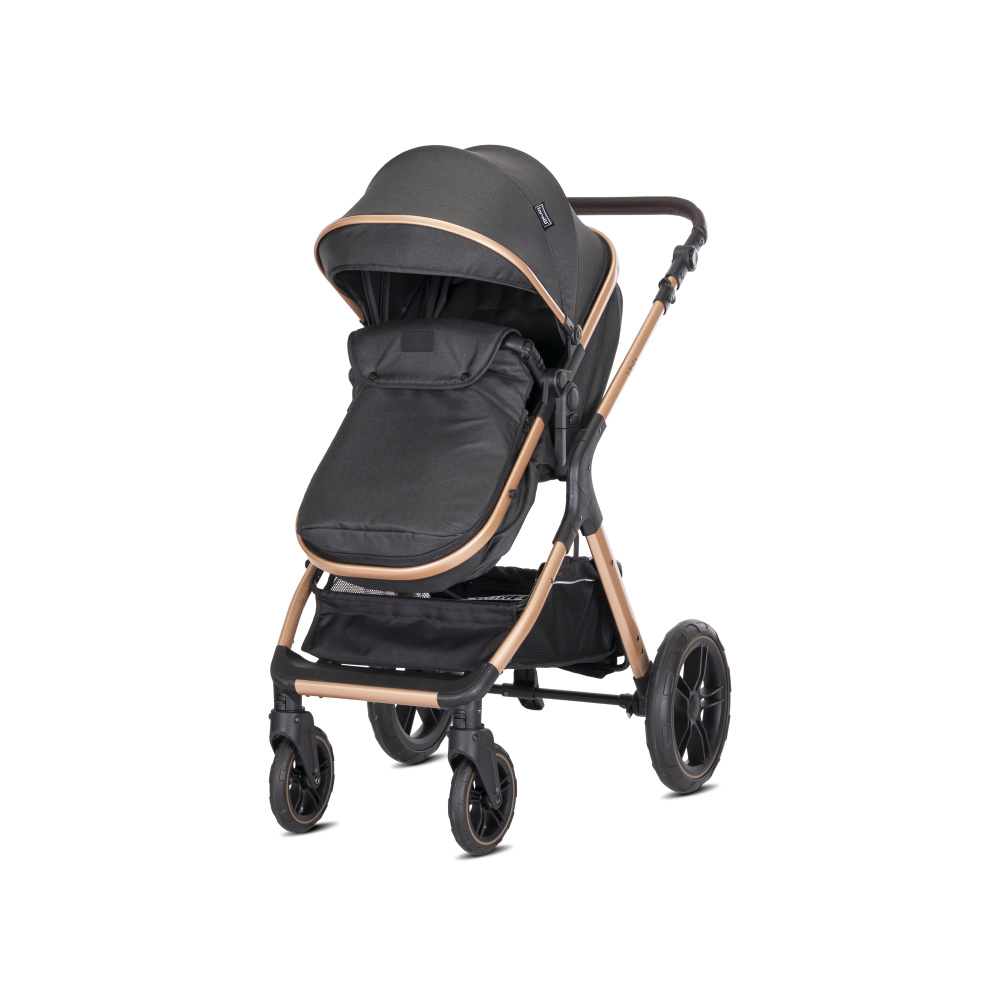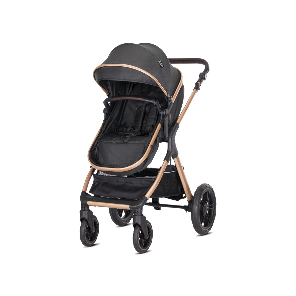 Cette poussette intègre un châssis robuste avec une fonction de pliage simple, des freins fiables sur les roues arrière et un système de harnais de sécurité à 5 points pour garantir une sécurité maximale. Le siège est rembourré d’un coussin doux, confortable pour l'enfant. Pour la protection contre les intempéries, elle est équipée d’une capote ajustable avec pare-soleil intégré. La poussette propose également un rangement adapté avec un panier sous le siège et des accessoires comme un sac à main pour maman et une boîte à accessoires sur la poignée.