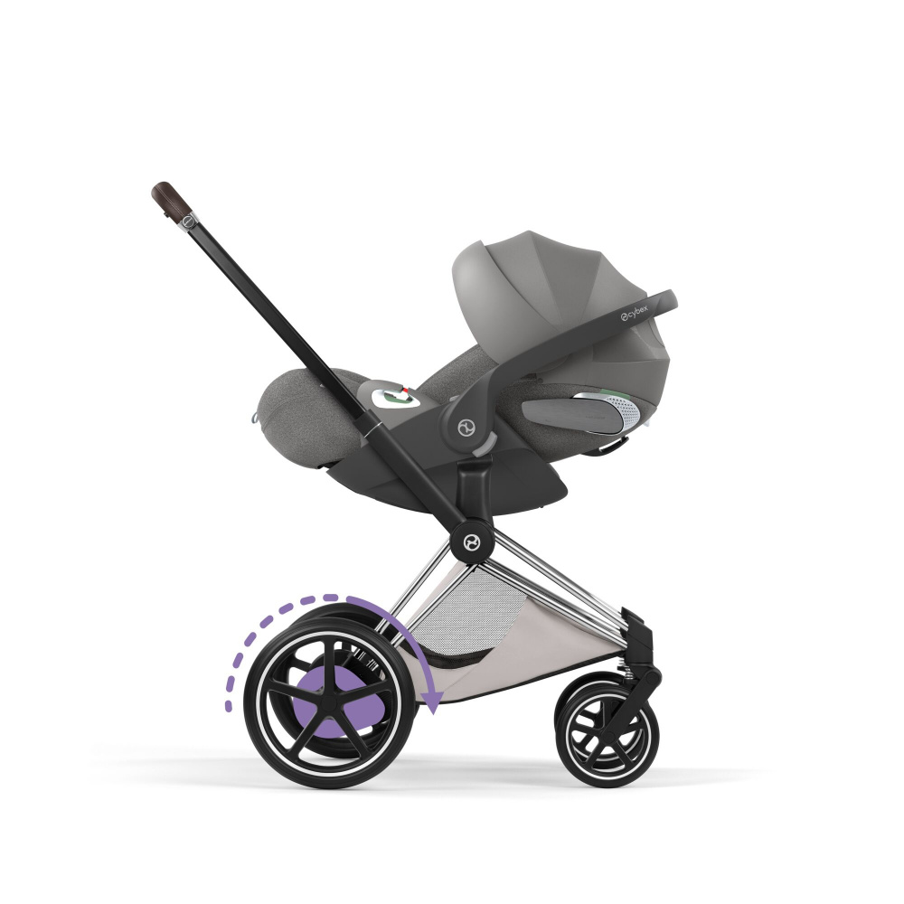 Découvrez la Poussette électrique e-priam 3 city grey châssis chrome de la marque Cybex composée de son châssis et de son assise, une solution complète pensée pour accompagner votre enfant dès la naissance avec un maximum de confort et de technologie. Grâce à son assistance électrique intégrée, elle facilite les déplacements au quotidien, notamment en montée et sur terrains irréguliers comme les pavés, les chemins ou le sable. Son mode bercement, contrôlable via application, permet d’apaiser votre bébé en douceur. Confortable et évolutive, l’assise ergonomique et réversible propose une position allongée, un repose-jambes réglable et un dossier avec inserts en mesh pour une bonne circulation de l’air. Son canopy extensible XXL UPF50+ protège efficacement votre enfant des éléments. Facile à utiliser, elle dispose d’un pliage compact, d’un harnais ajustable à une main et d’un guidon réglable pour s’adapter à chaque parent. Sa suspension intégrale et son mode deux-roues assurent une conduite fluide en toutes circonstances. Compatible Travel System, elle peut être utilisée avec une nacelle ou une coque auto (vendues séparément) pour s’adapter à chaque étape de la croissance.