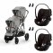 Composée de la poussette Gazelle S, l'assise supplémentaire, deux sièges auto Cloud G i-Size et les deux adaptateurs.