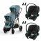 Composée de la poussette Gazelle S, l'assise supplémentaire, deux sièges auto Aton B2 i-Size et les deux adaptateurs.