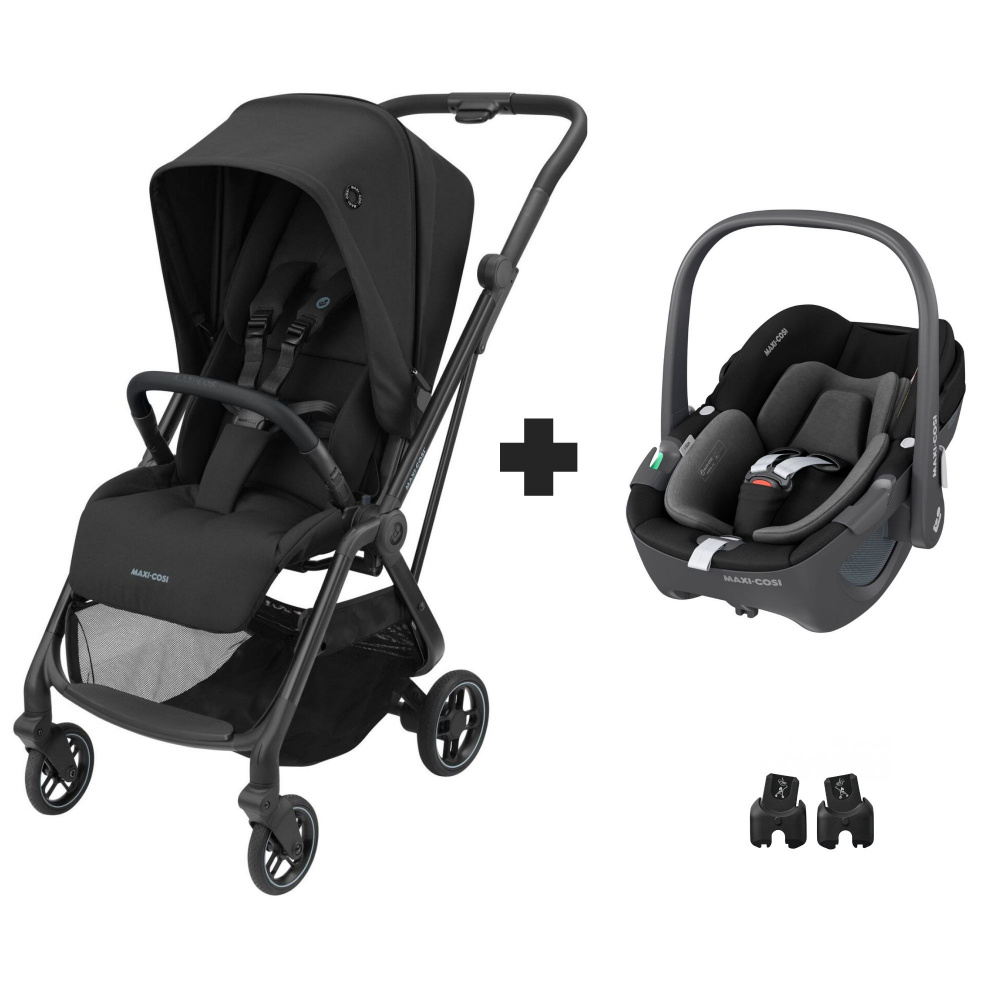 Poussette leona black + siège auto pebble 360 essential black