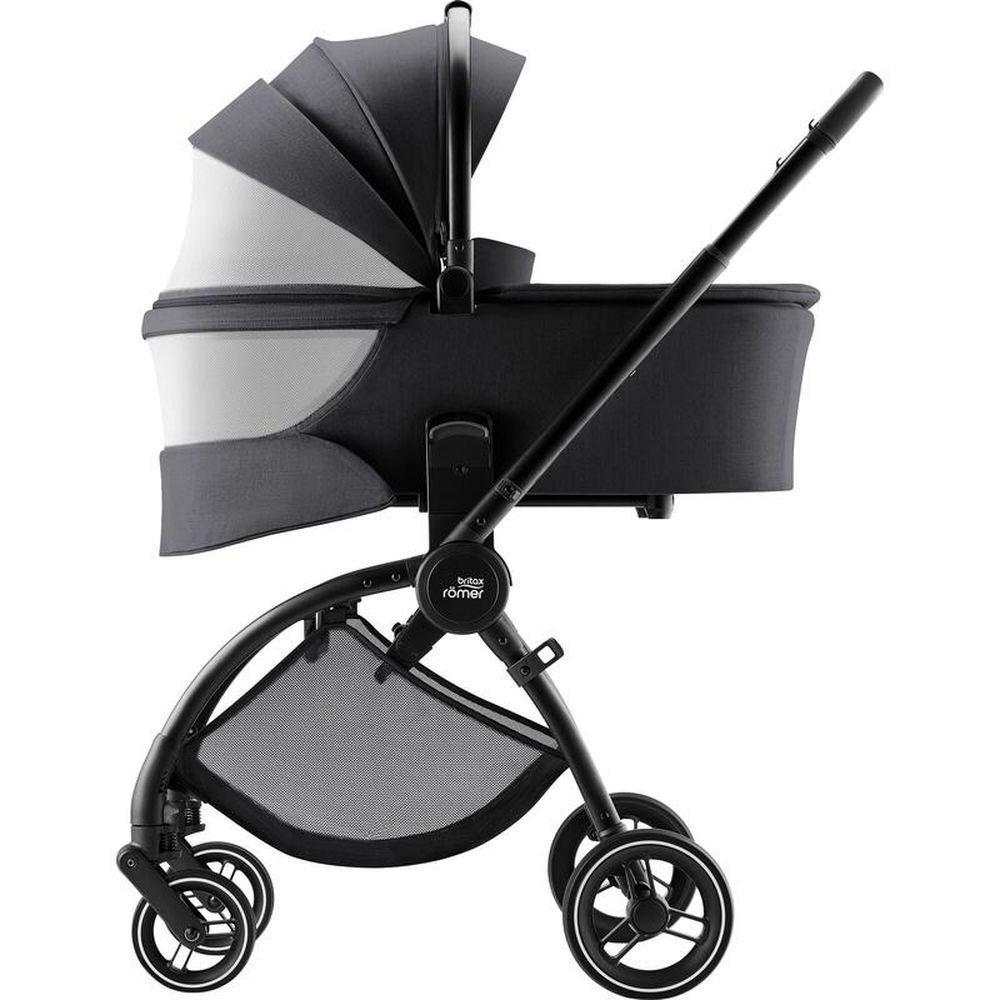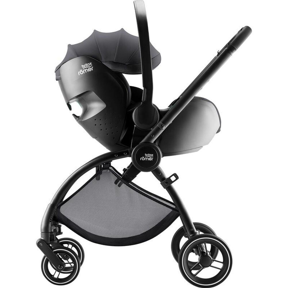 Poussette rio carbon black style de la marque Britax Romer. Cette poussette est utilisable en Travel System avec les cosy Baby Safe Pro, Baby Safe Core et Baby Safe 3 et la nacelle Rio. Ce produit est conçu pour une utilisation urbaine. Le système de freinage se situe au pied. La poussette Rio bénéficie d'un grand canopy. Le panier sous l'assise supporte 5 kg maximum. L'assise est réversible. Le guidon s'ajustera à votre taille pour une utilisation confortable. La poussette est livrée avec un porte gobelet et la barre de sécurité.