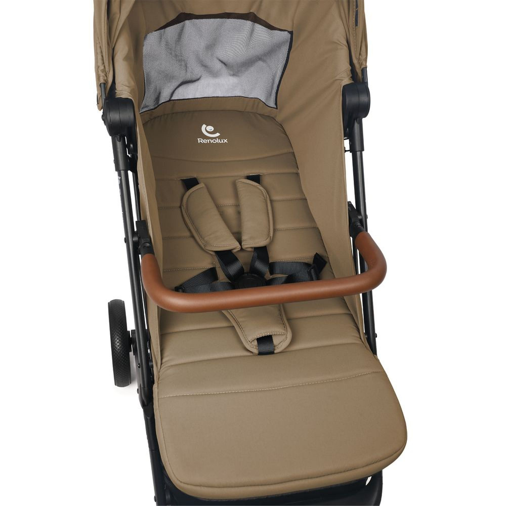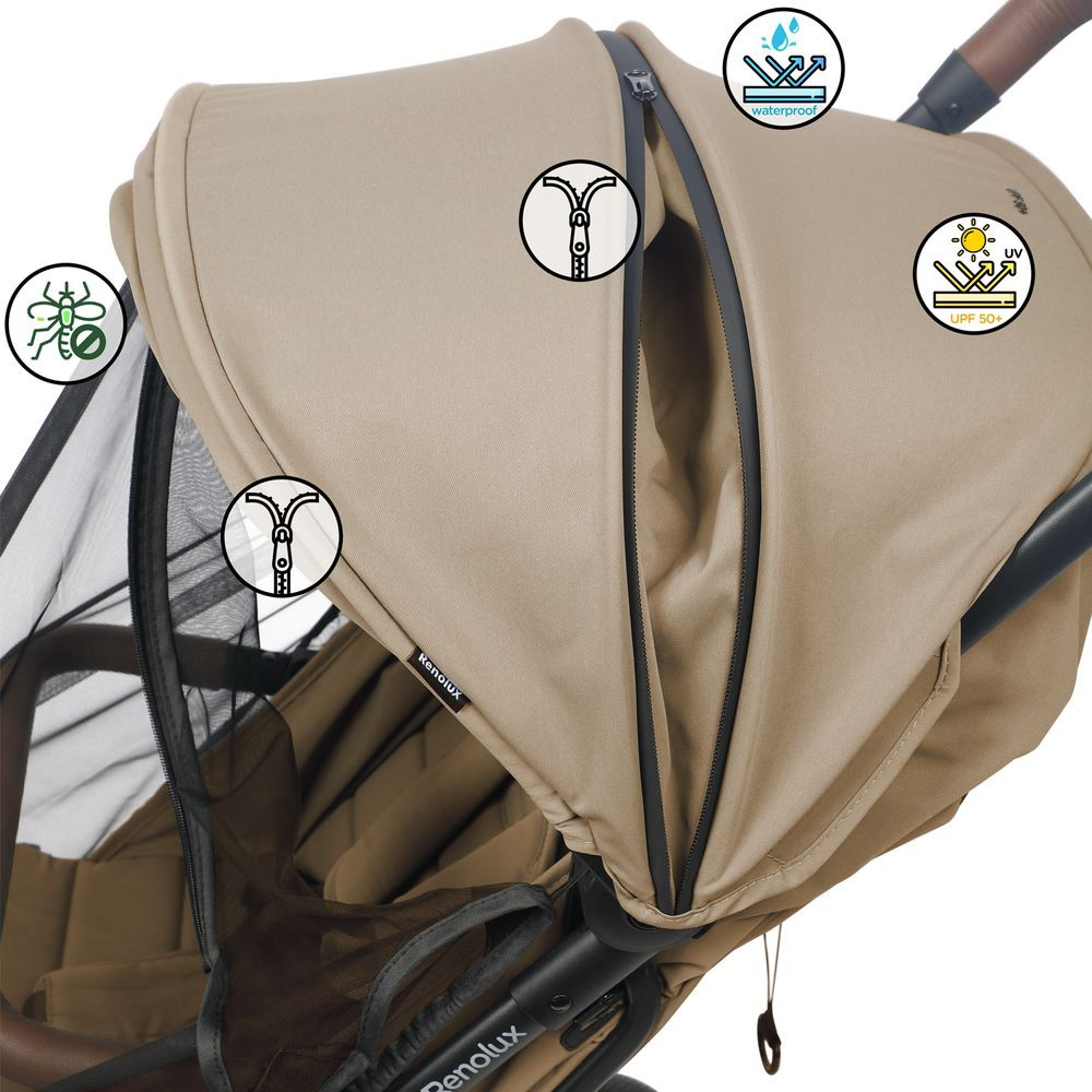 Le Poussette screen camel de chez Renolux. La poussette Screen de Renolux est une solution nomade ultra-complète et évolutive, accompagnant votre enfant de la naissance jusqu'à ses 22 kg. Elle se distingue par une protection tout-terrain unique, incluant une moustiquaire intégrée au canopy, un système d'aération optimisé avec rabat aimanté et un habillage pluie de série. Alliant élégance et praticité, son châssis léger en aluminium (7,2 kg) s'offre des finitions raffinées en simili cuir et un pliage d'une seule main extrêmement compact. Côté confort, son dossier inclinable à plat et son canopy waterproof anti-UV UPF 50+ garantissent des balades sereines et sécurisées en toutes saisons.