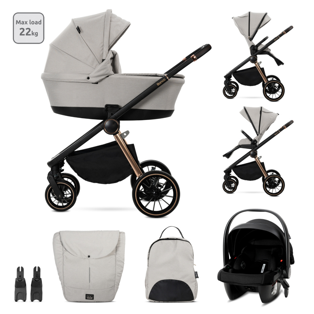 Caractéristiques de la Poussette trio bianca - nacelle + coque aria lux beige :