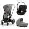 Adoptez la Poussette trio e-priam 2 mirage grey châssis rose gold + cloud g i-size + nacelle de la marque Cybex. Composée de la poussette e-Priam 2, du siège auto Cloud G i-Size et de la Nacelle Luxe.