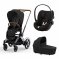 Adoptez la Poussette trio e-priam 2 sepia black châssis chrome brown + cloud g i-size + nacelle de la marque Cybex. Composée de la poussette e-Priam 2, du siège auto Cloud G i-Size et de la Nacelle Luxe.