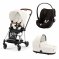 Craquez pour la Poussette trio mios 3 off white châssis chrome brown + cloud g i-size + nacelle luxe de la marque Cybex. Composée de la poussette Mios 3, du siège auto Cloud G i-Size et de la nacelle Luxe bébé.