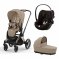 Poussette trio priam 4 cozy beige châssis rose gold + cloud g i-size + nacelle luxe