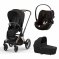 Poussette trio priam 4 sepia black châssis rose gold + cloud g i-size + nacelle luxe