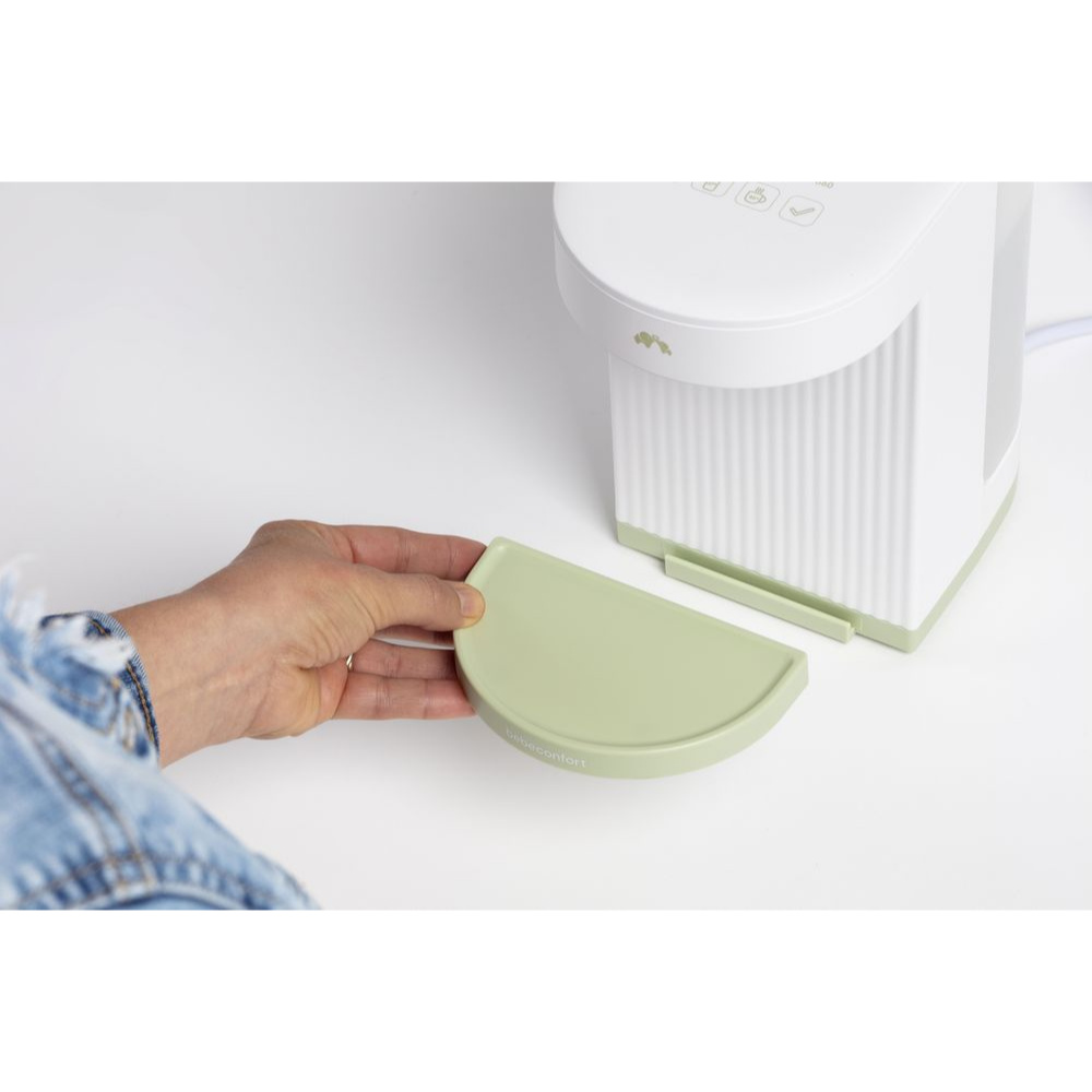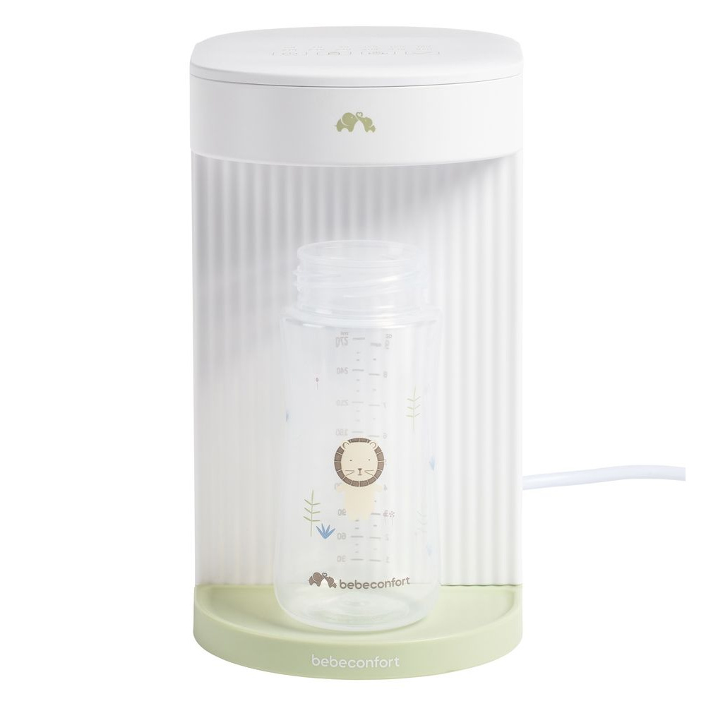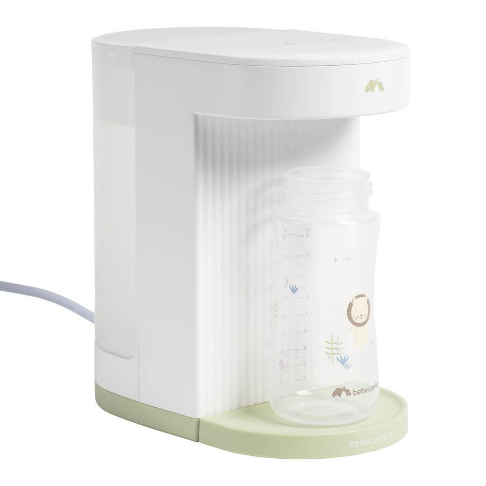 Le Préparateur de biberon de chez Bebeconfort. Préparez à toute tranquillité l'eau pour le biberon de votre enfant. Vous sélectionnez la température souhaitée et la taille de biberon et vous obtenez une eau chaude pour le biberon.