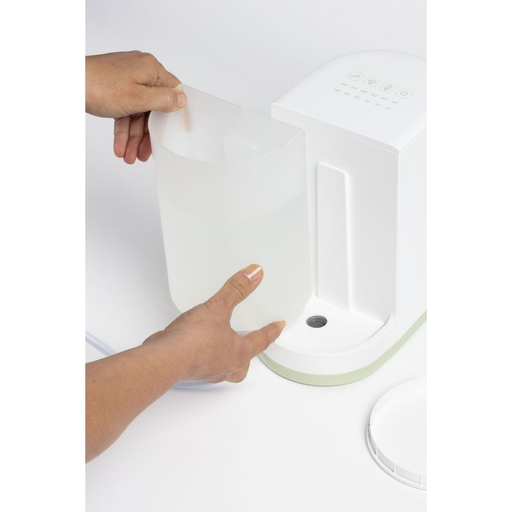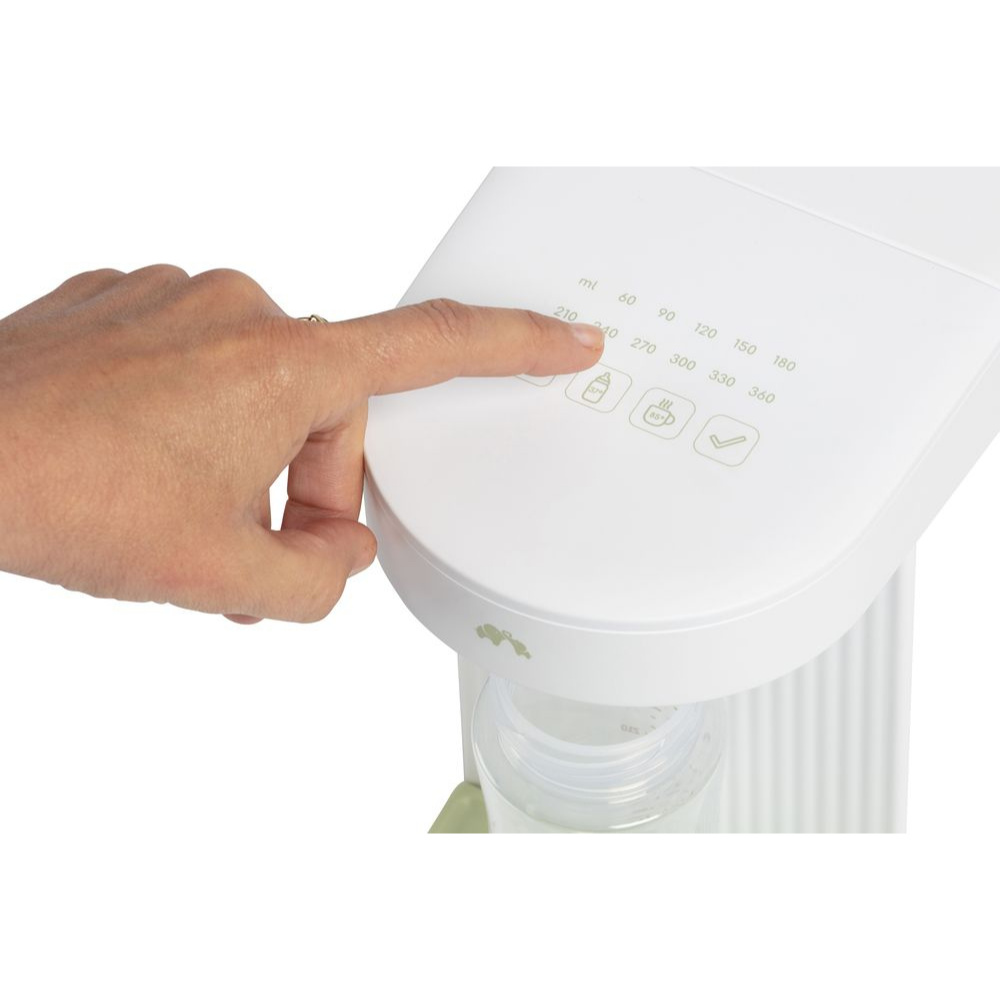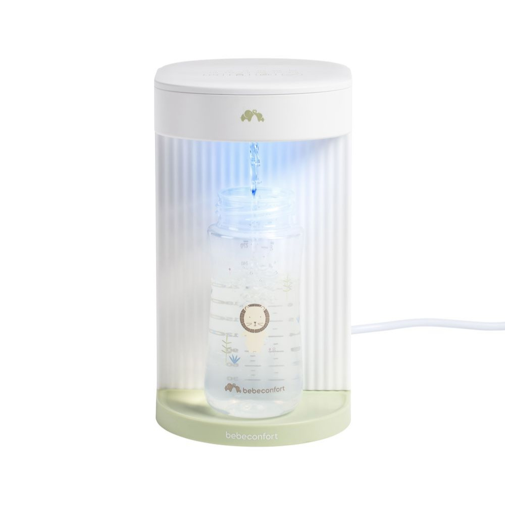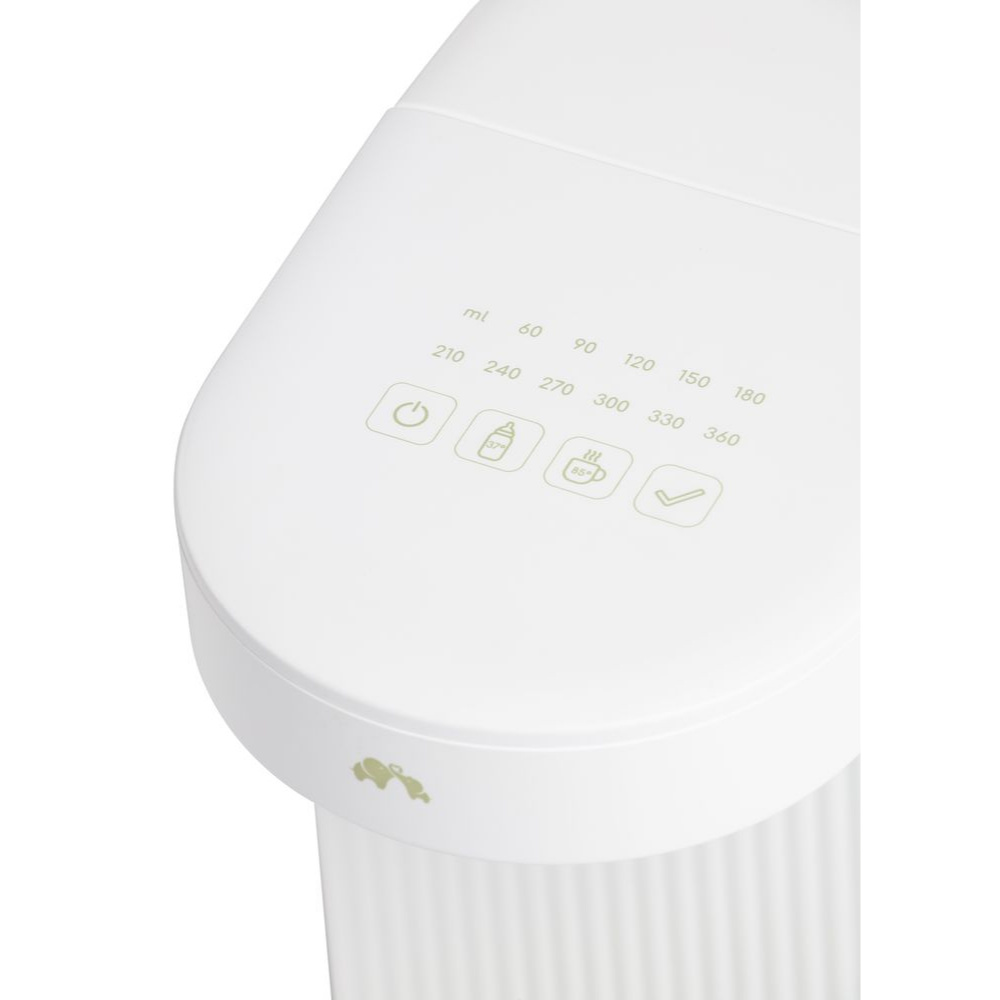 Le Préparateur de biberon de chez Bebeconfort. Préparez à toute tranquillité l'eau pour le biberon de votre enfant. Vous sélectionnez la température souhaitée et la taille de biberon et vous obtenez une eau chaude pour le biberon.