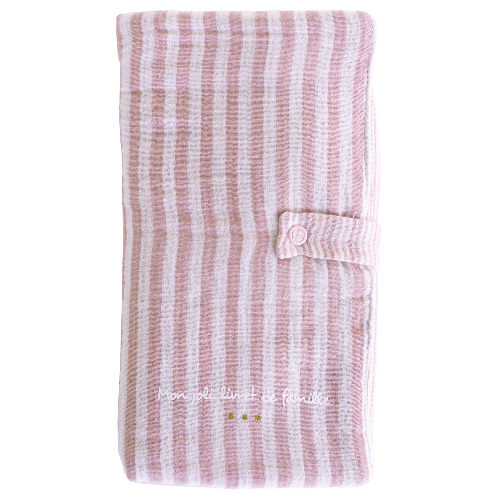 Protège-livret de famille rayé avec poche photo rose
