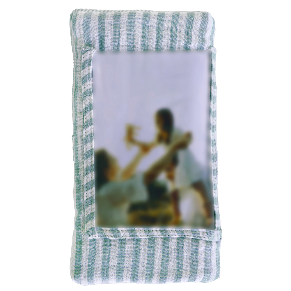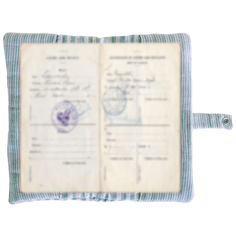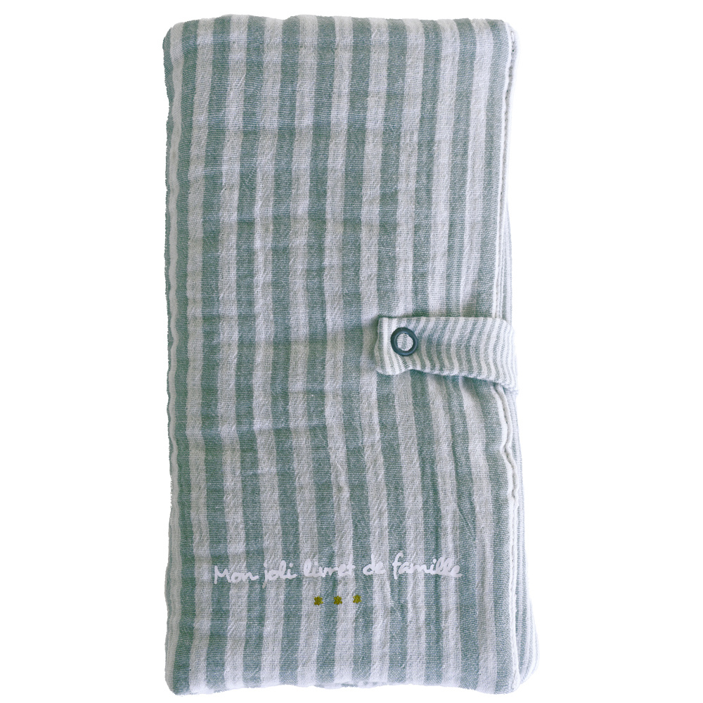 Protège-livret de famille rayé avec poche photo vert de gris