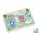 Puzzle en bois 24 pièces a la ferme de la marque Janod. Pour aider votre enfant à faire le puzzle, le modèle est imprimé sur le fond du plateau. Une fois fini, les pièces s'enlèvent facilement du plateau grâce à une encoche. Le petit plus de ce puzzle : il y a 5 différences entre le modèle et le puzzle.