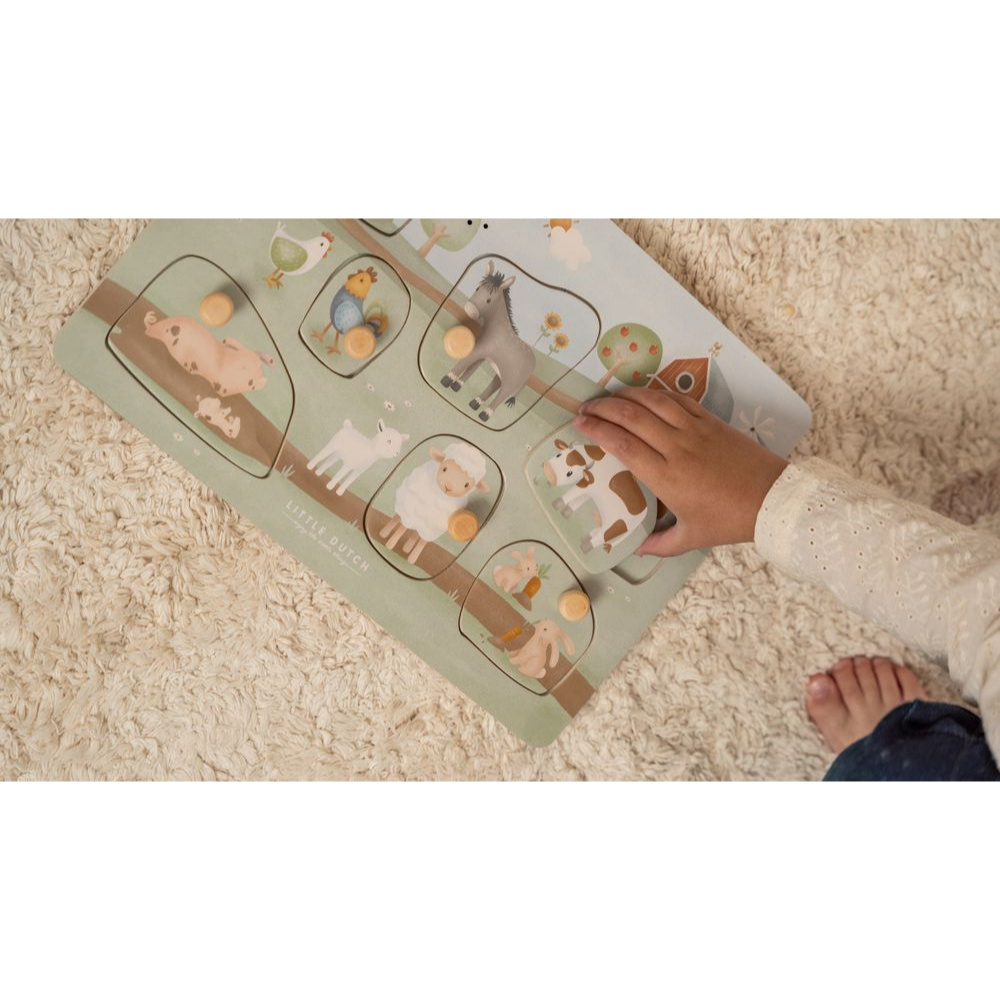 Découvrez ce Puzzle sonore en bois fsc - little farm de chez Little Dutch. Lorsque votre enfant enlève une pièce le puzzle émettra un son. Utilisation dès 12 mois. Piles non fournies (2xAAA). Conforme à la norme EN-71-1-2-3.