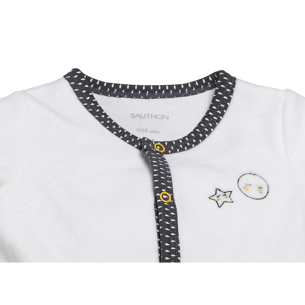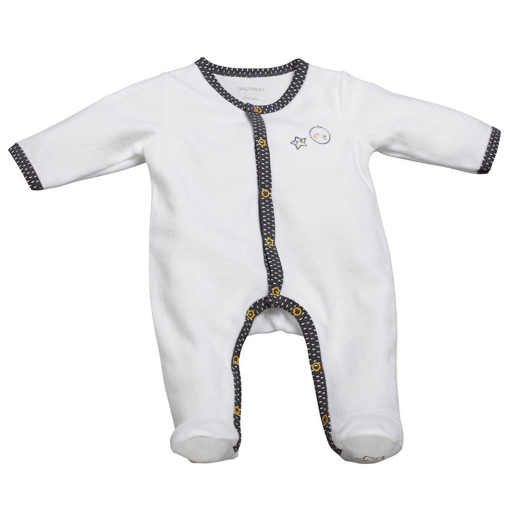 Il est essentiel de maintenir bébé au chaud. Les pyjamas Sauthon en bouclette velours et ouverture sur le devant préservent le confort et la chaleur des tout-petits.