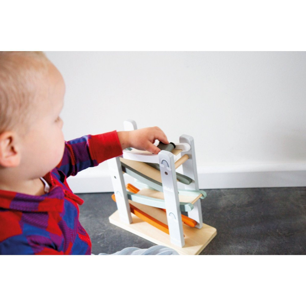 Optez pour la Rampe de course en bois 18 mois et + de la marque Tryco. Idéal pour des moments de jeu dynamiques et pleins de surprises. Ce jouet captivant invite les petites voitures à dévaler des pentes successives dans un mouvement fluide et amusant. Chaque descente stimule la coordination œil-main, la concentration et la curiosité des tout-petits, qui adorent répéter l’expérience encore et encore. Avec ses niveaux inclinés en bois et ses véhicules adaptés aux petites mains, cette rampe allie plaisir et apprentissage dans un design robuste et attrayant.