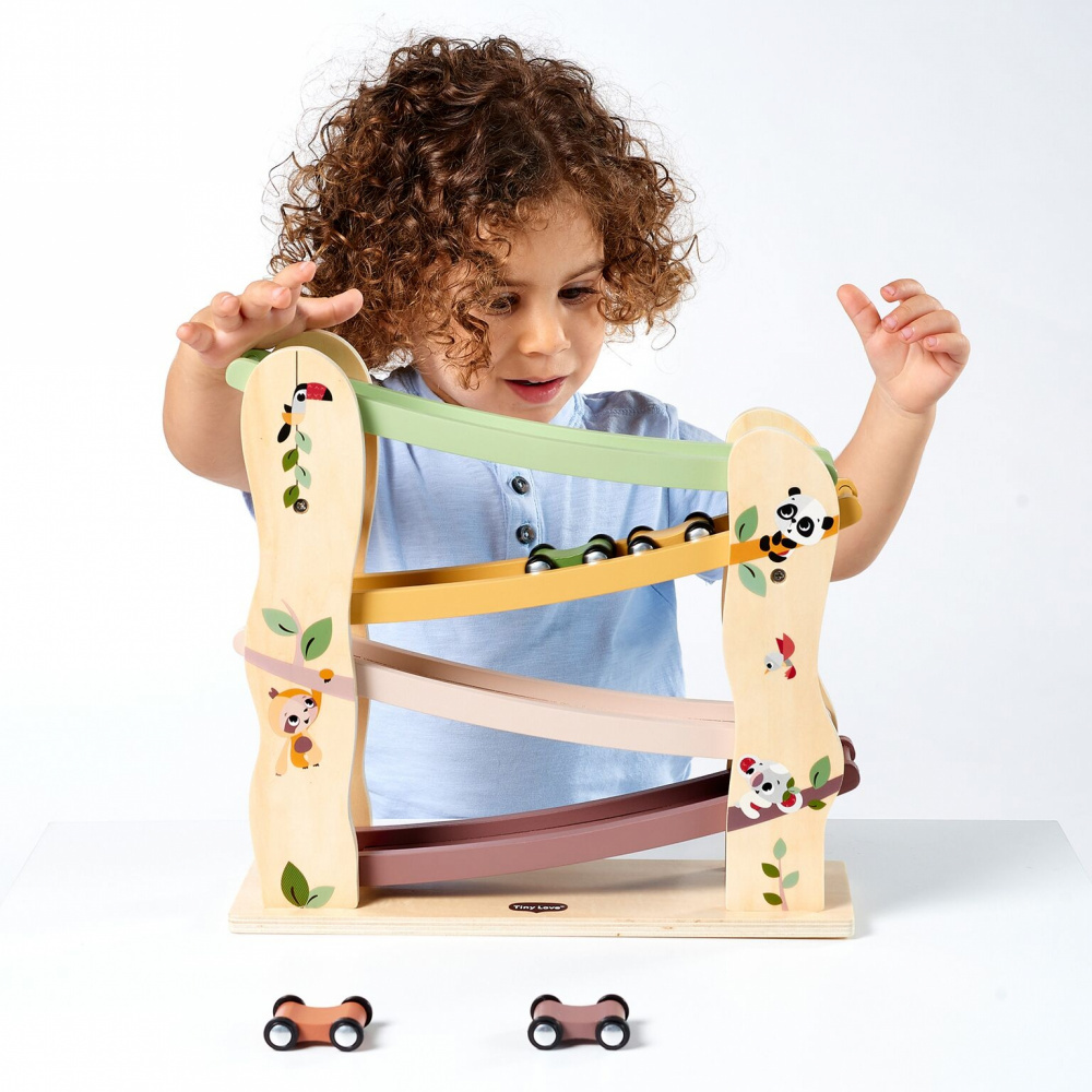 La Rampe de course en bois - collection boho chic de chez Tiny Love est un jeu idéal où votre enfant s'amusera pendant des heures en plaçant les voitures en haut pour lancer la course de voitures. Issue d'une fabrication aux normes FSC, ce jeu convient aux enfants de 18 mois et plus. Composé de 4 voitures, votre enfant va apprendre la notion de gravité tout en s'amusant.