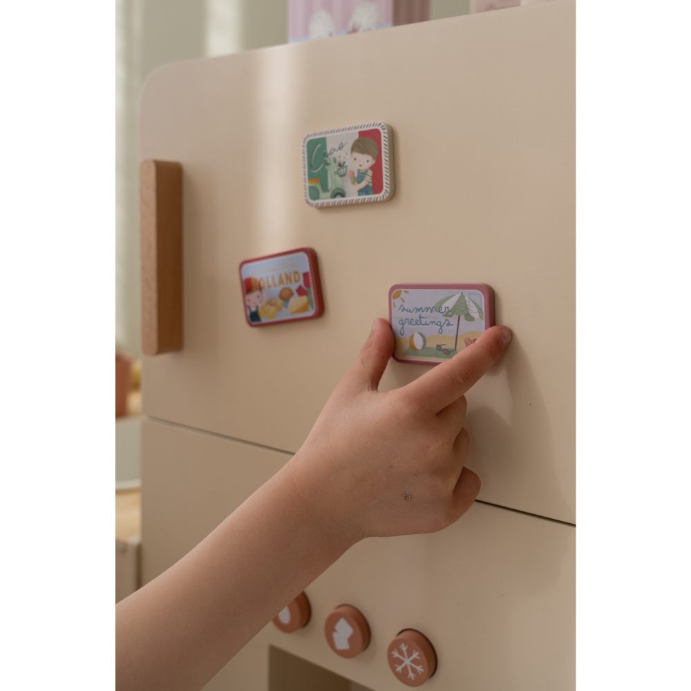 Le Réfrigérateur fsc - edition limitée de chez Little Dutch. Ce réfrigérateur est un jouet en bois charmant et éducatif, conçu pour stimuler l'imagination des enfants et les initier aux tâches ménagères de manière ludique. Le jouet est garantit que le bois utilisé provient de forêts gérées de manière responsable La manipulation des boutons rotatifs et des portes aide à développer la motricité fine et la coordination œil-main de l'enfant.