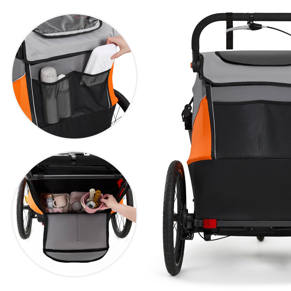 La Remorque vélo enfant 3en1 nava orange de chez Kinderkraft. La Nava est une solution 3-en-1 ultra-polyvalente conçue pour accompagner les parents actifs dans toutes leurs sorties, passant avec fluidité d'une remorque de vélo robuste à une poussette citadine maniable ou une poussette de jogging stable. Adaptée pour un enfant jusqu'à 22 kg, elle privilégie le confort et la sécurité grâce à ses suspensions arrière, son siège rembourré avec harnais 5 points et sa protection intégrale contre les éléments (pluie, soleil, insectes). Ce modèle se distingue par son excellent rapport qualité-prix, offrant une structure tout-terrain durable et un pliage compact qui simplifie le quotidien sans encombrer inutilement votre garage.