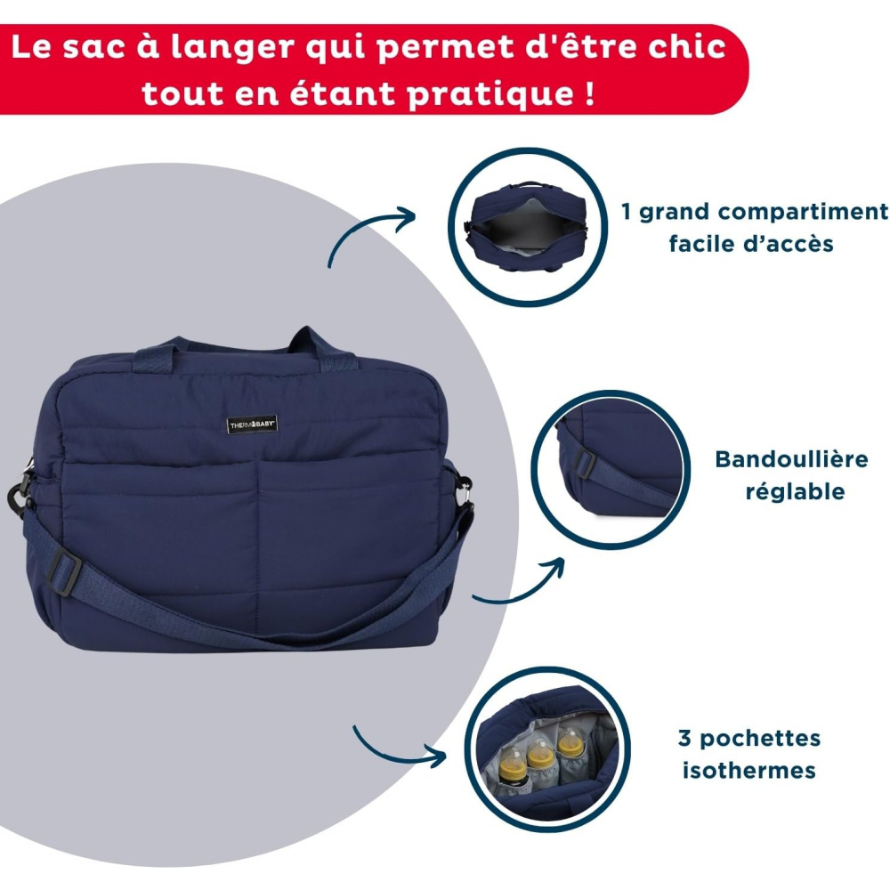 - Type : sac à langer matelassé grande capacité.