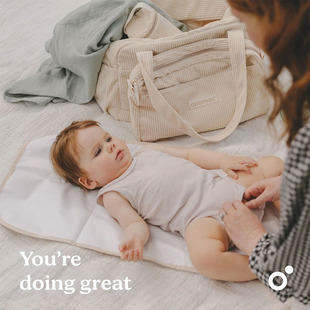 Le Sac à langer velours côtelé fluffy corduroy beige de la marque Doomoo permet d’emporter facilement tout le nécessaire de bébé au quotidien. Avec sa grande capacité de 24 L et ses nombreuses poches, il offre une organisation pratique pour les couches, biberons et vêtements. Sa pochette amovible est idéale pour les sorties rapides. Polyvalent, il peut se porter à la main, à l’épaule ou en bandoulière, et s’attache facilement à une poussette ou une valise. Son tissu en velours côtelé apporte une touche élégante tout en restant fonctionnel pour les déplacements avec bébé.