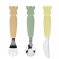 Découvrez ce set de couverts de la marque Vulli, ce kit composé d'une fourchette, d'une cuillère et d'un couteau seront parfait pour assurer des moments incroyables à bébé lors de ses repas. Sa matière en silicone sera parfaite pour les mains de votre petit bout et le bout rond de son couteau lui assurera toute la sécurité dont il a besoin.