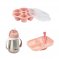 Set repas silicone 2 pièces compartimenté + tasse paille inox 250 ml + multiportions silicone 6 x 90 ml old pink
