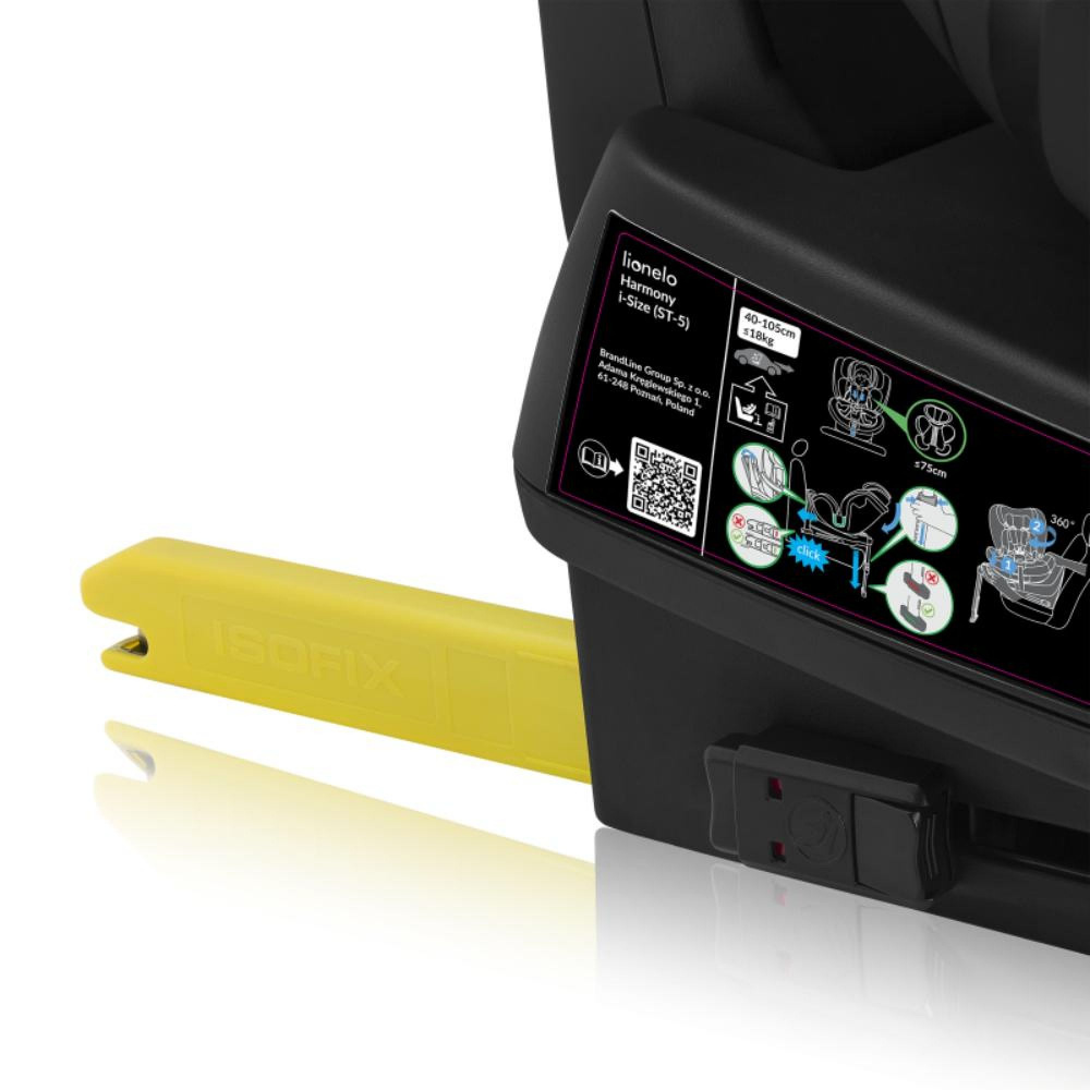 La base EasyTurn 360° offre une rotation complète, facilitant l’installation et la sortie de l’enfant, ainsi que le changement d’orientation du siège sans avoir à le retirer. Pour renforcer la sécurité, le Lionelo Harmony i-Size est équipé du système Side Impact Guard, qui comprend un crash-pad latéral repositionnable afin d’absorber l’énergie en cas de choc latéral et de réduire la distance entre la portière et le siège.
