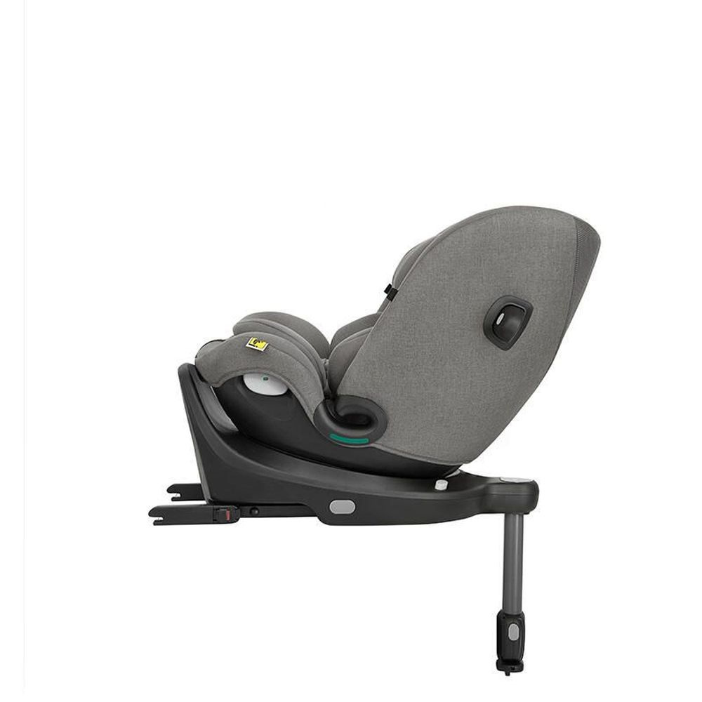 Siège auto i-size i-spin max thunder de la marque Joie. Ce siège auto évolutif suivra votre enfant de sa naissance à ses 12 ans environ. De 40 à 105 cm, il vous faudra installer votre enfant dos à la route avec le harnais de sécurité, ensuite de 76 à 105 cm, vous pourrez installer votre enfant face à la route avec le harnais de sécurité et enfin de 100 à 150 cm, il vous faudra installer votre enfant face à la route avec la ceinture de sécurité de la voiture. Grâce aux voyants rouge et vert, vous saurez si le i-Spin Max est bien installé. Le produit est équipé du système Guard Surround Safety qui renforce la protection latérale. La rotation à 360° du siège auto s'effectue à une seule main. La rotation du produit permet d'installer et faire sortir votre enfant aisément de la voiture sans effort physique important. La têtière du siège auto bénéficie du système Tri Protect, composée de trois couches dont une mousse à mémoire de forme pour absorber les impacts. La jambe de force est réglable dans 18 positions pour un bon ajustement à la voiture. Le i-Spin Max s'incline sur au total 10 positions. Le dossier, le harnais et la têtière s'ajustent en simultané pour apporter un confort dans l'utilisation du siège auto.