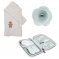 Ce pack contient tout les indispensables pour le bain de bébé! Une sortie de bain avec son gant en jersey 80x80cm aux motifs teddy de la marque Childhome, un thermomètre de bain Lotus Green blue de la marque Béaba et la trousse de toilette Hygge grise de la marque Suavinex avec ses 6 accessoires.