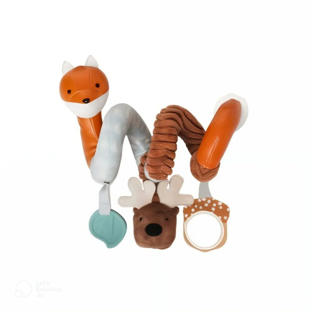 Le Spirale d'activités - forêt de chez Little Big Friends. La spirale d'activités sont composées de différentes textures, couleurs et matériaux qui éveillent la vue, le toucher et l'ouïe de bébé. En attrapant et en manipulant les différents éléments de la spirale, bébé développe sa coordination œil-main et sa motricité fine. Les spirales se fixent facilement sur la plupart des poussettes, des sièges-autos et des lits d'enfant.