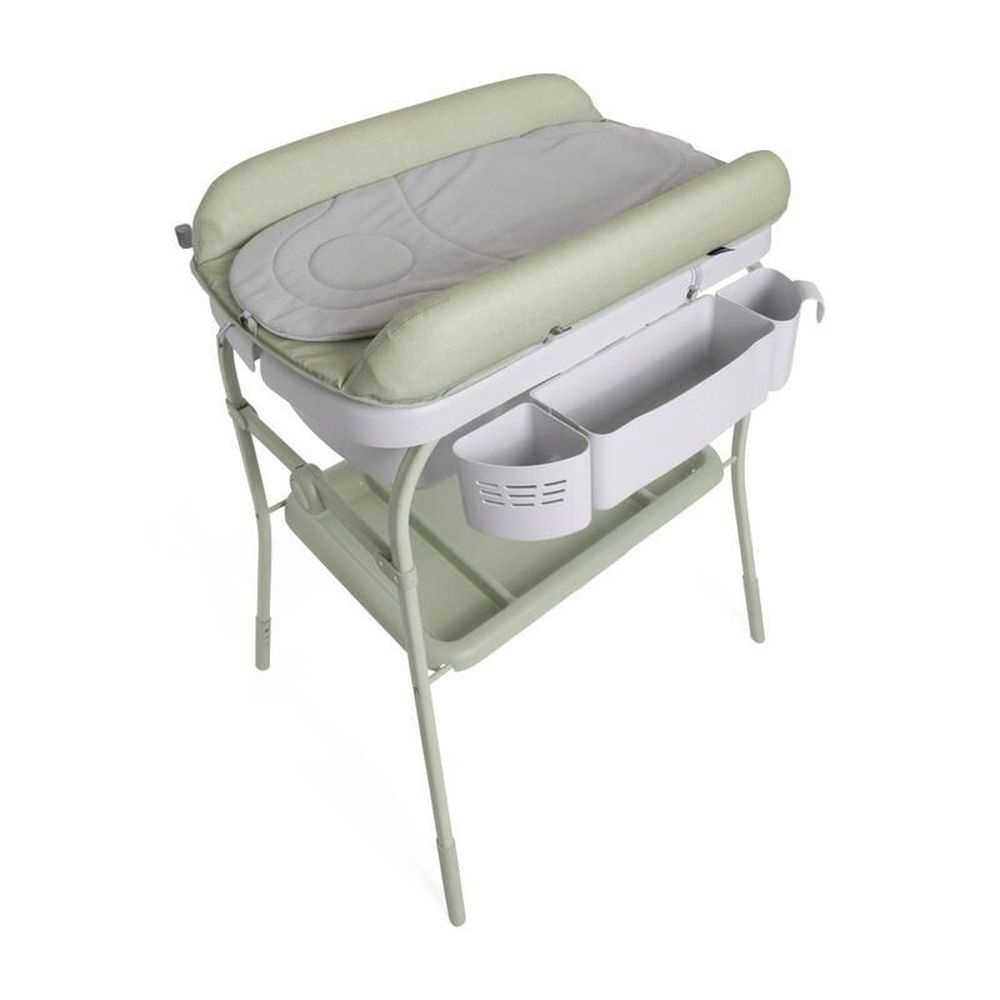 La Table à langer avec baignoire cuddle & bubble oasis de chez Chicco. Cette baignoire est très pratique quand on dispose de très peu de place. Très compact et dotée de deux roues, une fois pliée, cette table à langer sera très facile à ranger dans le placard. Le réducteur de la table à langer baignoire est amovible et très doux. La table est réglable en hauteur sur 3 positions grâce à des pieds ajustables.