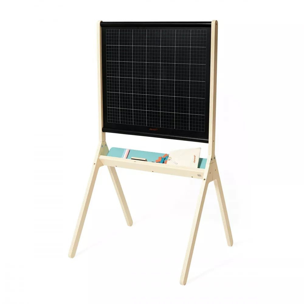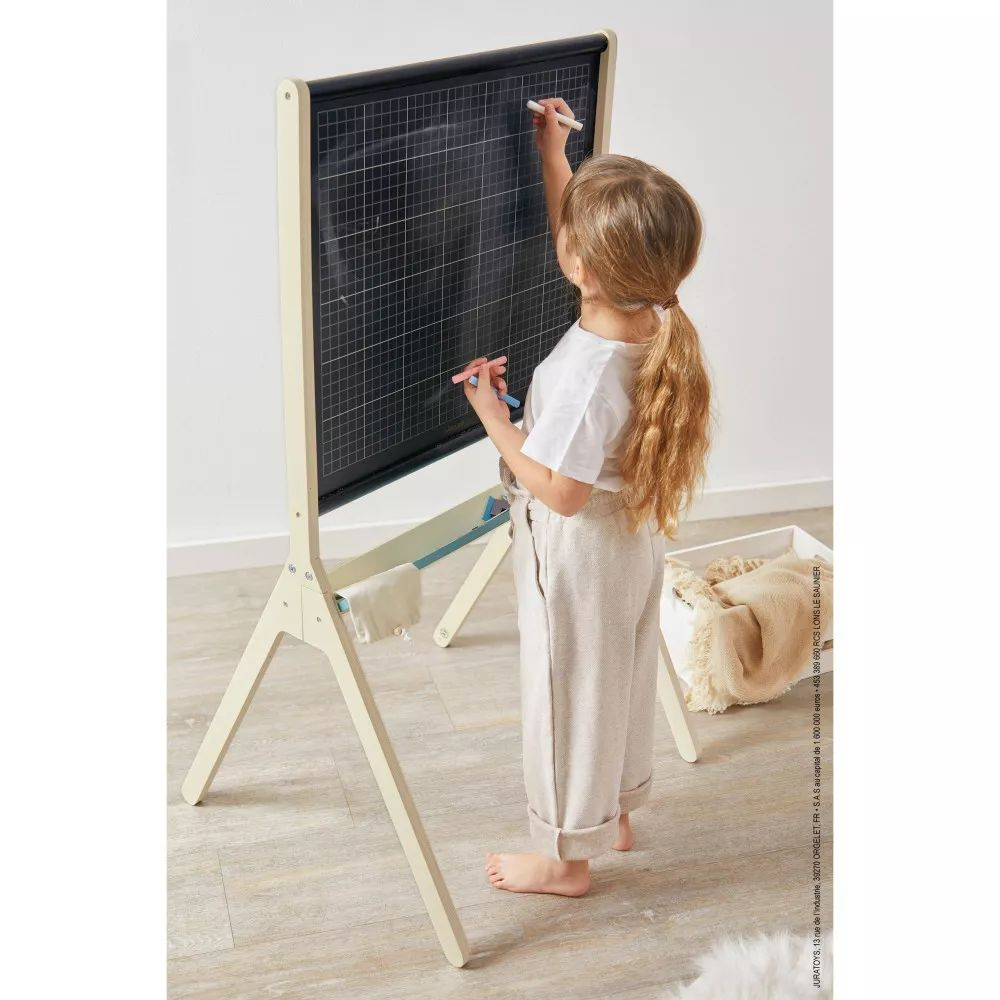 Tableau classique double face noir magnétique de la marque Janod. C'est le produit parfait pour aider votre enfant à écrire. Il s'amusera aussi à dessiner des heures dessus. Avec le tableau magnétique, il y a 3 craies, 1 brosse, 20 magnets et un livret de jeu. Sur un côté du tableau, c'est une face unie noire et sur l'autre côté, c'est une face quadrillée.