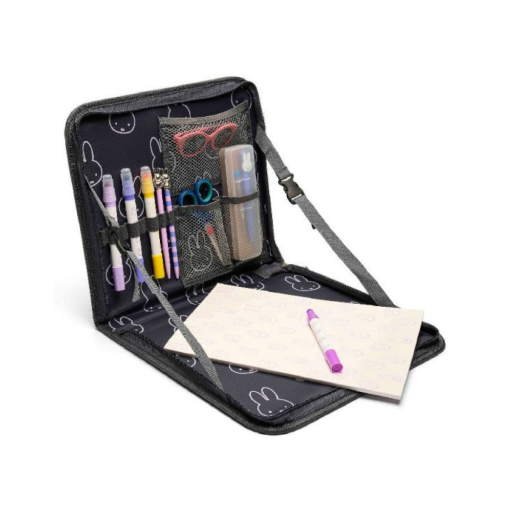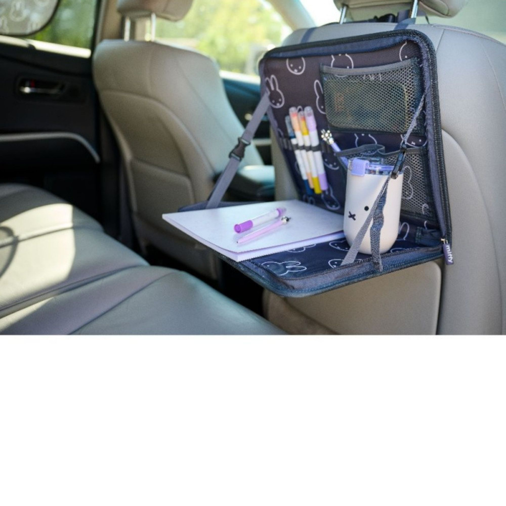 Gardez l’arrière de la voiture rangé et votre enfant occupé grâce à cette tablette de voyage pratique et pliable. La tablette de voyage Miffy Dooky s’installe rapidement à l’arrière du siège avant pour offrir à l’enfant un espace dédié pendant les trajets. Elle permet de poser jeux, coloriages, goûter ou tablette, tout en évitant que les objets ne tombent sous les sièges. Grâce à ses poches de rangement et à son bord relevé, elle aide à maintenir l’ordre dans la voiture. Une solution pratique pour des trajets plus calmes et organisés. Cette tablette de voyage a été conçue pour faciliter les déplacements en voiture avec un enfant. Elle offre une surface pratique et des rangements intégrés, tout en restant légère et peu encombrante. Une fois pliée, elle se range facilement derrière le siège ou dans le coffre.