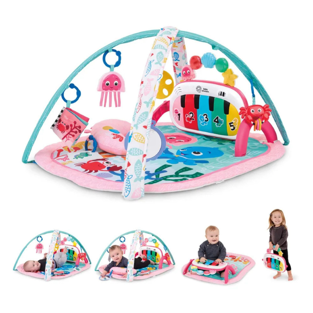 Offrez à votre bébé une expérience d’éveil complète avec le tapis de découverte musicale et linguistique, 4-en-1, rose de Baby Einstein. Conçu pour accompagner bébé de la naissance jusqu’à 36 mois, ce tapis évolutif stimule la motricité, la curiosité et les sens à travers quatre modes de jeu : allongé, sur le ventre, assis et en déplacement. Grâce à son piano interactif détachable, bébé découvre plus de 90 mélodies, sons et lumières qui l’encouragent à bouger et à explorer. Le tapis propose également un apprentissage multilingue (français, anglais, espagnol et allemand) pour initier bébé aux chiffres, couleurs et formes de manière ludique. Avec ses 6 jouets sensoriels amovibles — peluche Dean le chien, miroir, carotte texturée, livre froissé, grange à rouleau et cartes découverte — ce tapis d’éveil Baby Einstein transforme chaque moment de jeu en aventure à la ferme. Le coussin de soutien inclus aide l'enfant à se sentir bien installé, et le tapis lavable en machine garantit un entretien facile pour les parents.