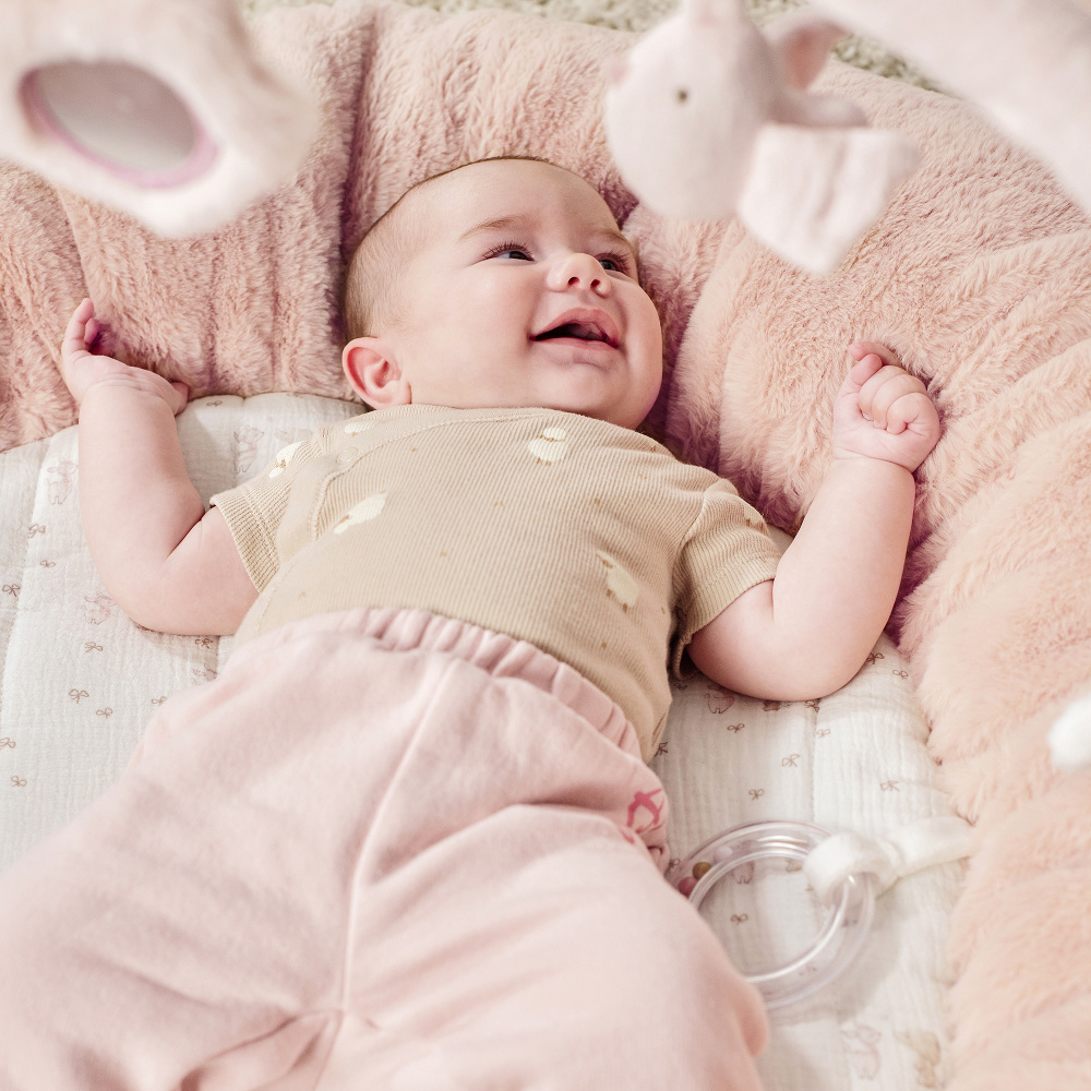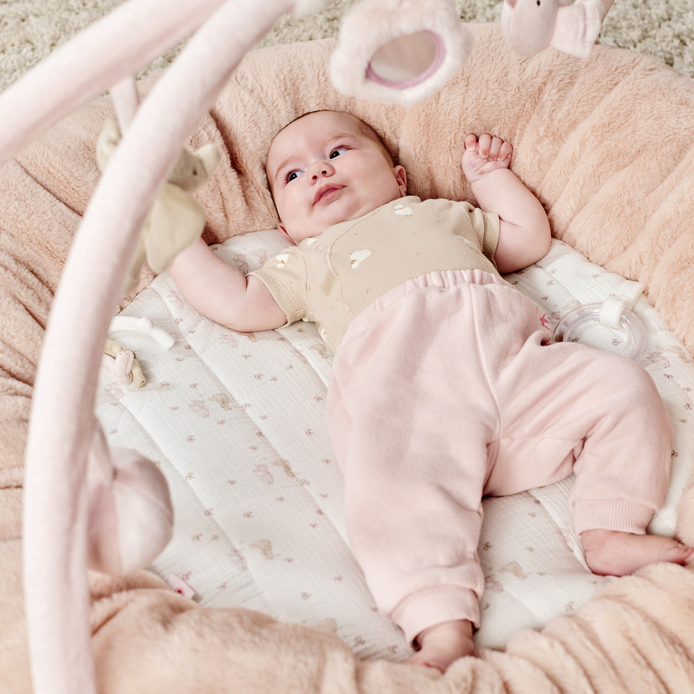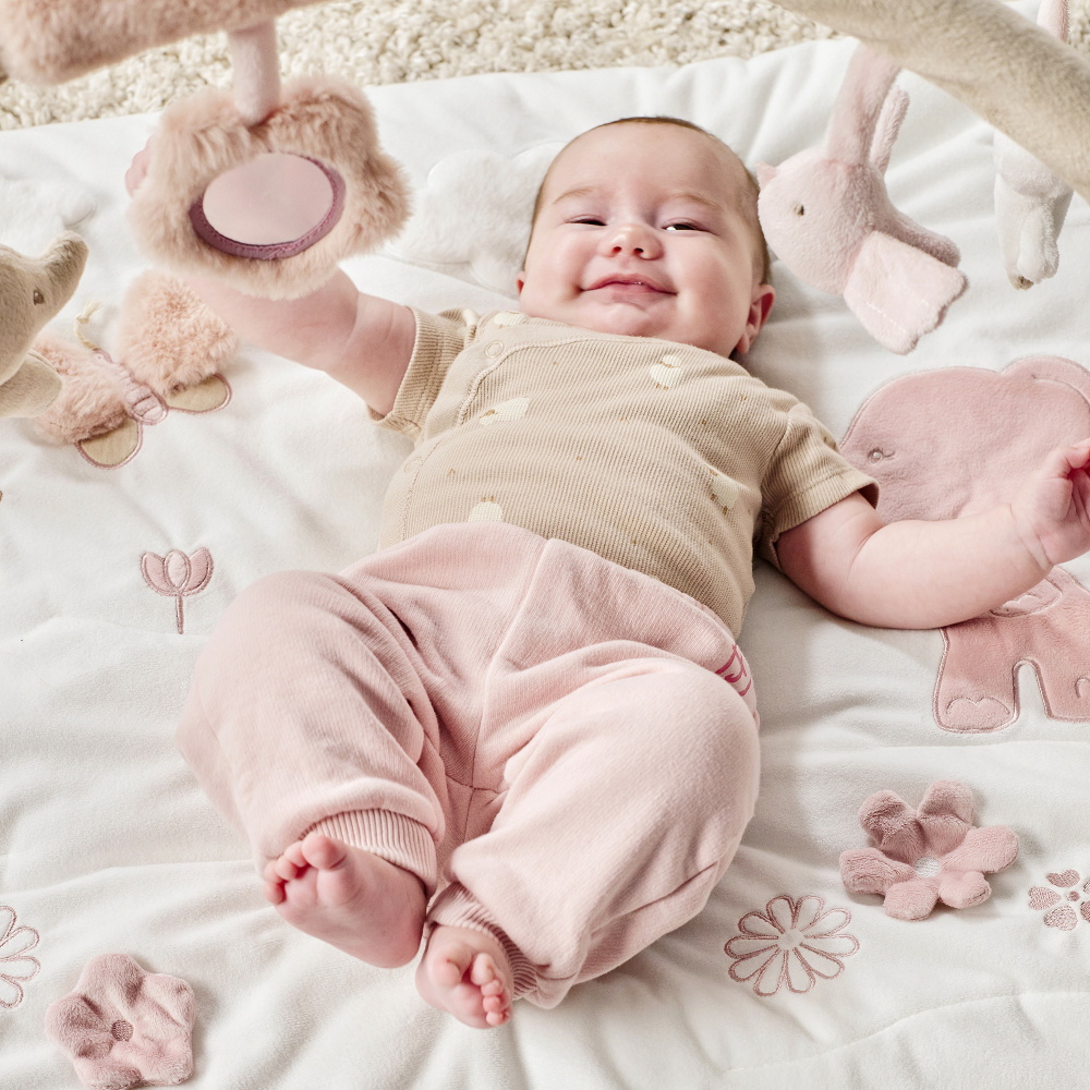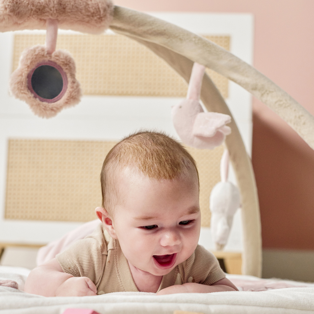 - Multiples activités : hochet, couineur, anneau de dentition, étiquettes, peluches et miroir