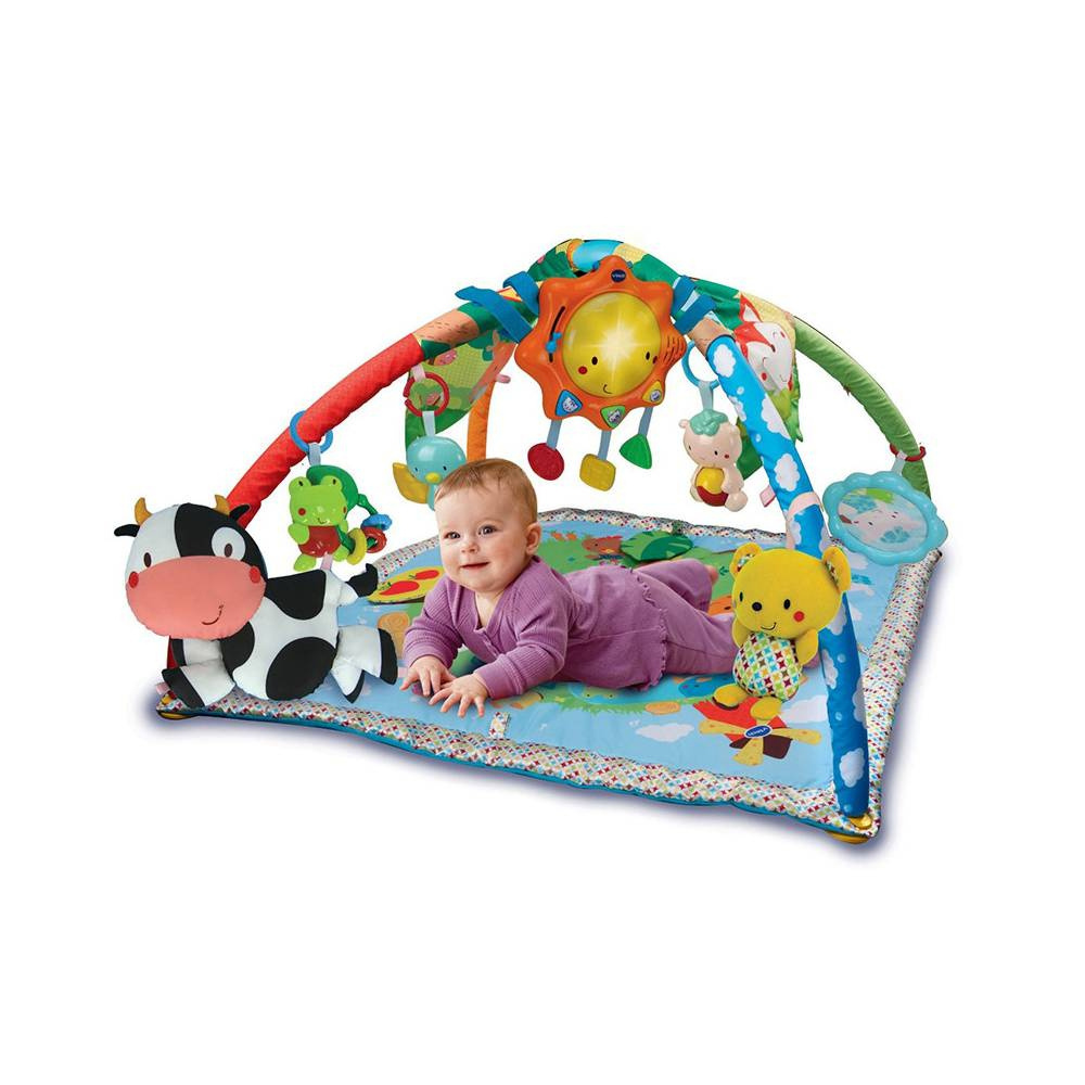 Découvrez le Lumi tapis des P'tits copains, un tapis d'éveil évolutif de la marque Vtech ! Conçu pour accompagner les différentes étapes de développement de votre tout-petit, ce tapis est rempli d'activités amusantes et stimulantes. Avec ses arches amovibles, Bébé peut jouer sur le dos en attrapant les hochets suspendus, ou se mettre sur le ventre pour explorer de nouvelles textures. Grâce à ses éléments interactifs, votre enfant découvre les couleurs, les formes et les animaux au rythme de 24 mélodies, 6 chansons et divers sons rigolos.