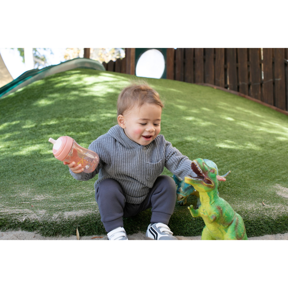 La Tasse avancée rose de chez Chicco. Cette tasse avancée est spécialement conçue pour les bébés à partir de 12 mois. À cet âge, votre enfant commence à mieux coordonner sa respiration et sa déglutition tout en apprenant à réguler le débit de la boisson. La tasse est 100% étanche (anti-goutte), idéale pour les déplacements ou pour éviter les petits accidents à la maison. Sa forme est étudiée pour être facilement tenue par les mains d'un enfant de 12 mois, même sans poignées latérales. Le bec a une forme ronde et un revêtement souple, résistant aux morsures. Il est conçu pour introduire progressivement l'usage de la paille et habituer l'enfant au positionnement correct des lèvres. Comme les autres tasses de la gamme, son bec est décentré. Cela permet à l'enfant de boire sans avoir à trop incliner la tête en arrière, favorisant ainsi une bonne posture du cou.