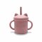 Caractéristiques de la Tasse silicone avec poignée et paille rose :