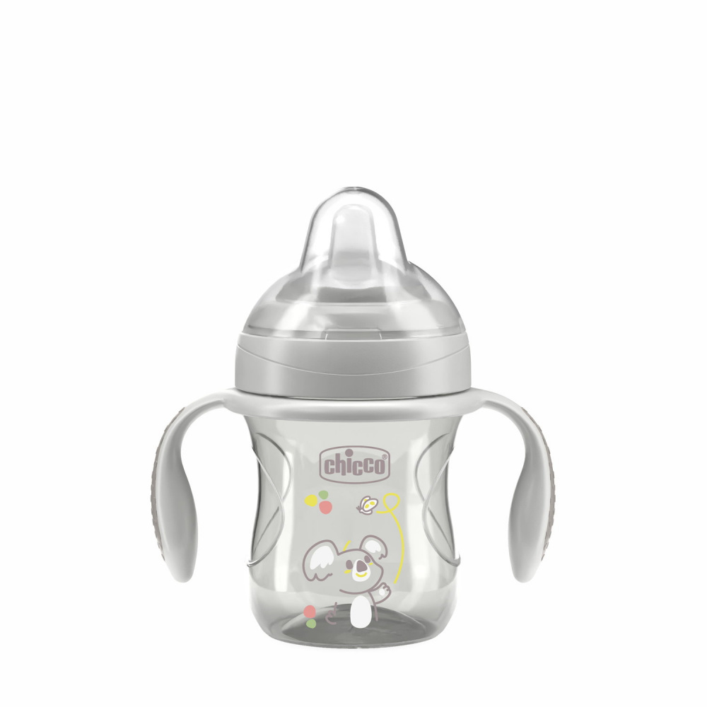 La Tasse transition bec souple silicone 4m + rose de chez Chicco. C'est l'accessoire indispensable pour accompagner les premiers repas de bébé. Ainsi votre enfant aura sa propre tasse à table. Elle est dôtée d'une double utilisation : anti-fuites avec sa valve brevetée à l'intérieur de la tasse et en flux libre si l'on retire la valve. La tasse d'apprentissage, équipée d'un bec en silicone, permet à bébé de passer de la tétine de son biberon à sa première tasse en toute simplicité. Le bec de la tasse est excentré, ce qui permet à bébé d'adopter une bonne position du cou mais aussi des lèvres quand il boit. Sa poignée antidérapante est parfaitement adaptée aux petites mains de bébé ce qui permet de suivre la croissance de bébé.