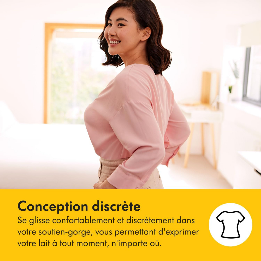 Le tire-lait électrique Medela Solo™ Hands-Free est une solution innovante conçue pour offrir une extraction du lait facile et confortable, particulièrement adaptée aux mamans actives. Il s’agit d’un tire-lait simple ultra-léger pesant seulement 76 g, ce qui en fait l’un des plus légers du marché. Sa conception compacte permet de le glisser dans une poche ou de le porter discrètement dans un soutien-gorge, offrant ainsi une grande liberté de mouvement.