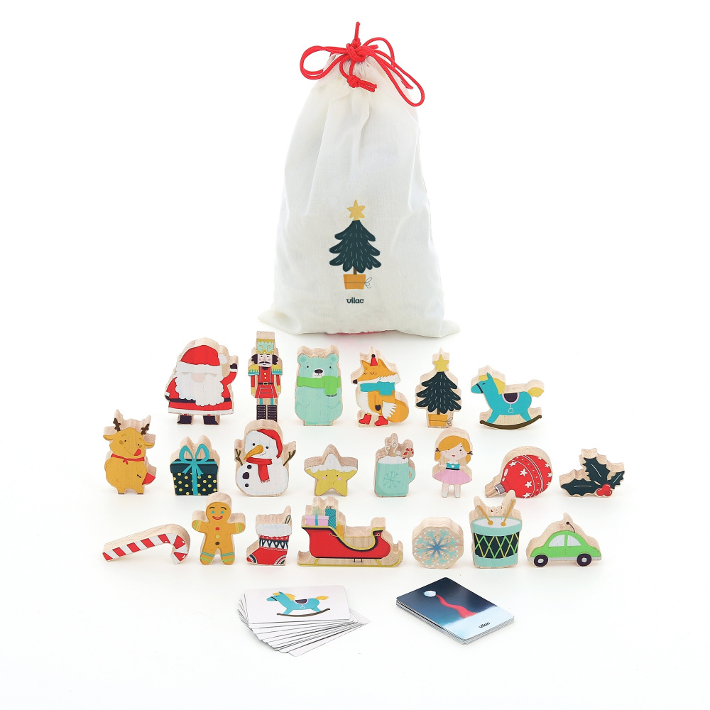 Touche et trouve calendrier de l'avent de la marque Vilac. Ce jeu permettra de développer le sens du toucher de votre enfant. Ce produit peut se transformer aussi en jeu de loto sur le thème de la ferme. Avec ce jeu, votre petit pourra jouer tout seul ou alors plusieurs en famille avec vous. Dans ce jeu, vous trouverez 21 pièces en bois et 20 cartes illustrées. Chaque jour de décembre, votre enfant trouvera une pièce qui compose le jeu.