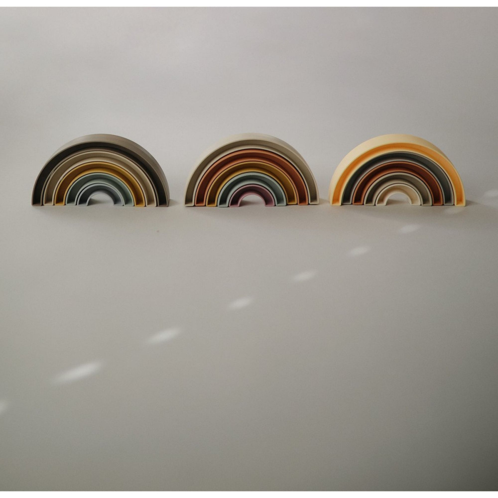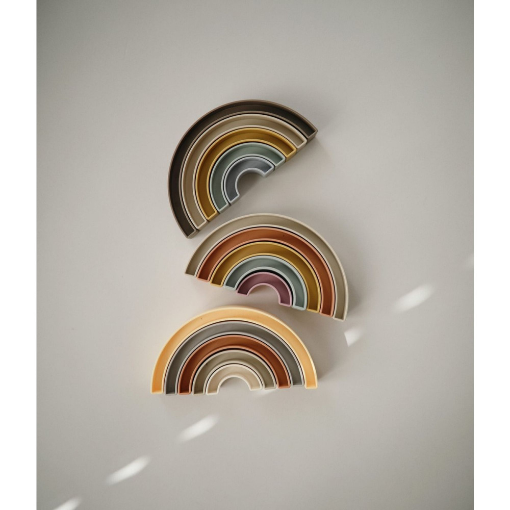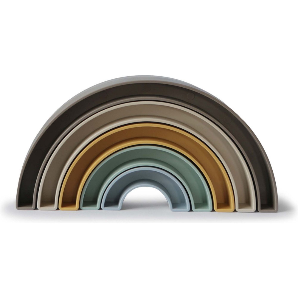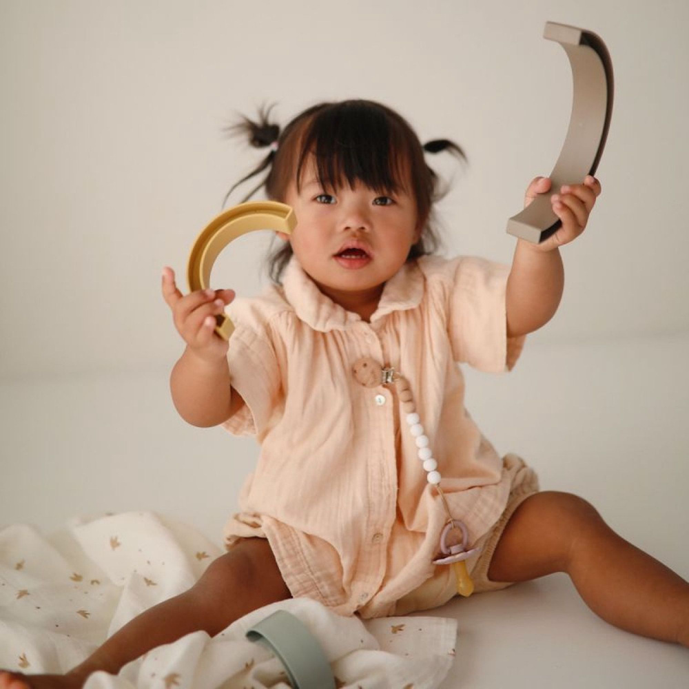 Optez pour la Tour à empiler arc-en-ciel - hillside de la marque Mushie. Avec ses couleurs tendres et ses formes arrondies, ce jouet d’éveil invite bébé à explorer, empiler et créer à sa façon. Les cinq arches, faciles à manipuler, encouragent la coordination œil-main, la motricité fine et l’imagination. Légère et adaptée aux petites mains, elle permet de varier les constructions en empilant dans l’ordre, à l’envers ou même en inventant de nouvelles combinaisons. Conçue dans des matériaux sûrs, elle offre un moment de jeu à la fois ludique et rassurant.
