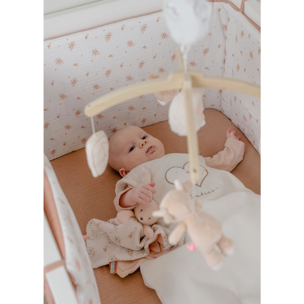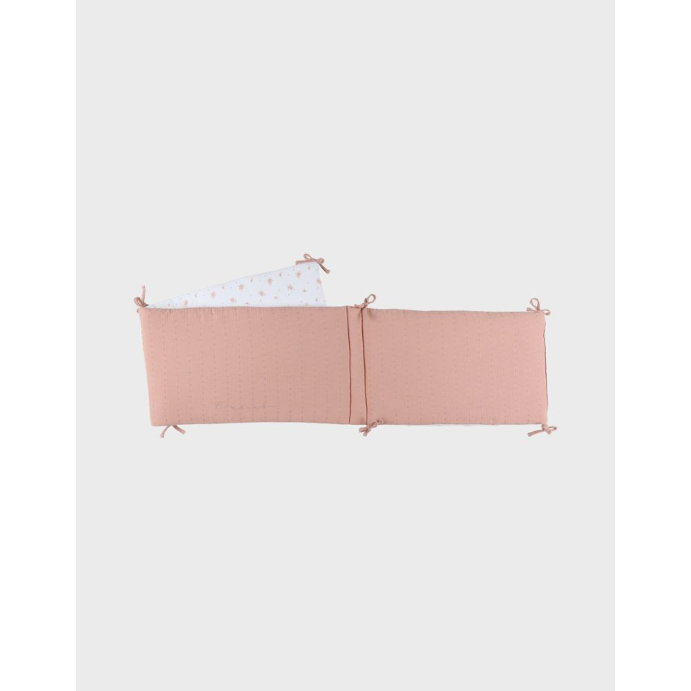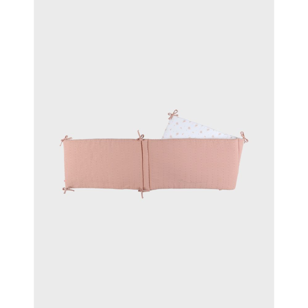 Le tour de lit de Noukie's en mousseline de coton bio crée un environnement doux et sécurisant pour bébé. Réversible, il propose un côté à motif floral et un côté uni rose texturé pour s’adapter à la décoration de la chambre. Compatible avec les lits 60x120 cm et 70x140 cm, il protège votre tout-petit des chocs contre les barreaux grâce à son rembourrage structuré qui assure un bon maintien.