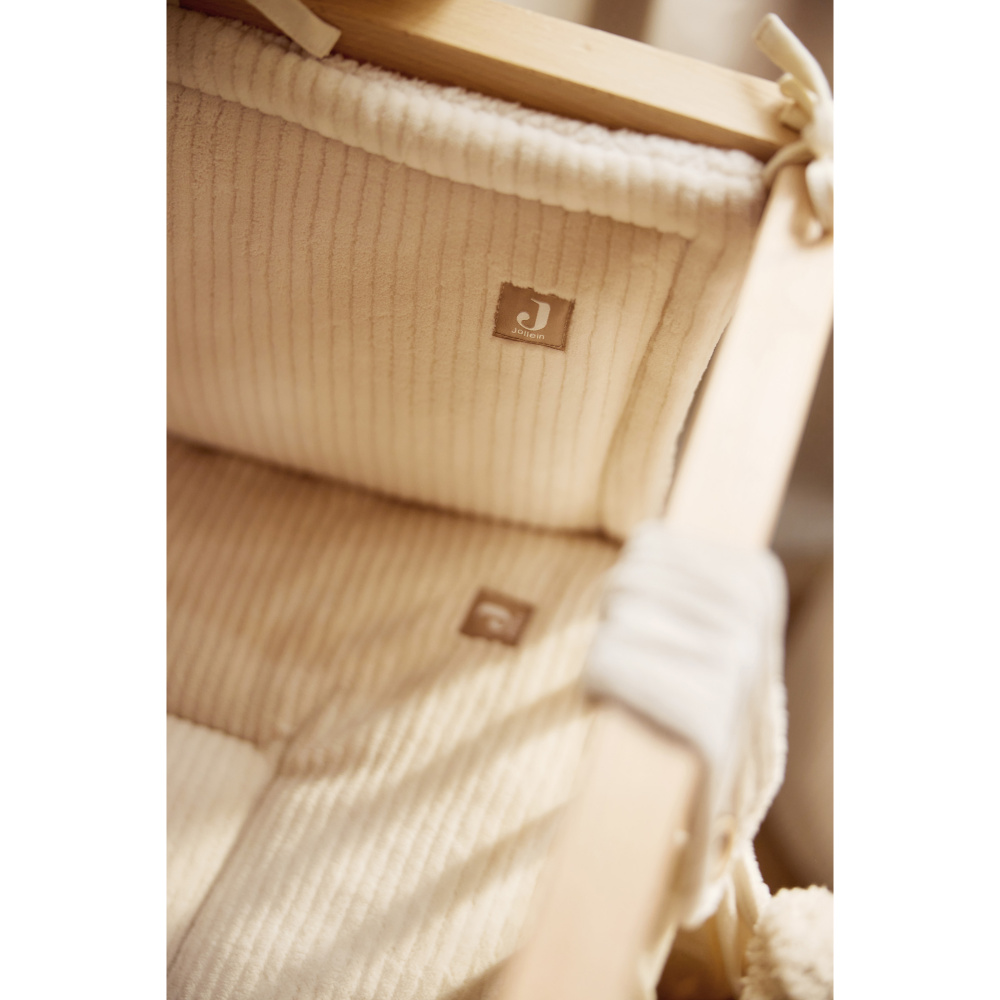 Offrez à votre enfant un espace sûr et confortable avec le Tour de parc bébé cloudy rib oatmeal de la marque Jollein. Grâce à son rembourrage moelleux, il protège efficacement bébé des barreaux du parc tout en créant une atmosphère douce et rassurante. Facile à installer, il se fixe simplement aux côtés du parc à l’aide de liens pratiques et reste bien en place pendant les moments d’éveil et de jeu. Son design sobre et élégant s’adapte à tous les intérieurs, faisant de ce tour de parc un accessoire à la fois sécurisant, pratique et esthétique dès les premiers mois de bébé.