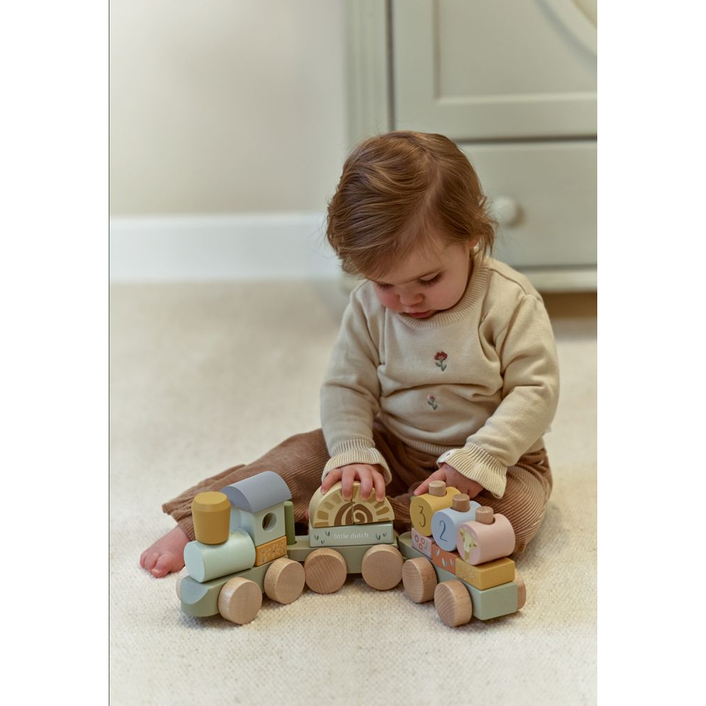 Le train à blocs en bois Safari Friends de Little Dutch accompagne bébé dans ses premiers jeux de construction. Ludique et éducatif, il stimule la motricité fine et la créativité tout en offrant des moments de jeu amusants.