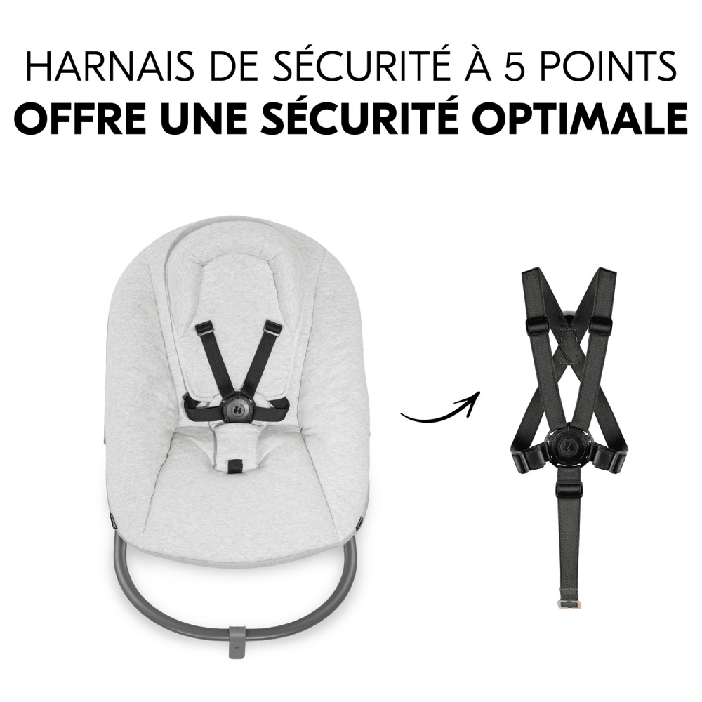 Le transat balancelle pour chaise haute évolutive Alpha 2 en 1 de couleur Light grey de la marque Hauck est idéal ! Profitez du transat pour transformer votre chaise haute Alpha+ ou Beta+ en transat en hauteur. Après l'heure de manger, vous pourrez laisser votre enfant se reposer tranquillement au creux de son confortable. transat. Utilisable dès la naissance, le transat balancelle sera un choix qui fera plaisir à coup sûr ! Se reposer, dormir, boire son biberon... que de possibilités dans ce transat ergonomique. Votre bébé sera non seulement bien installé, mais surtout en toute sécurité. Le dossier se règle d'une main en position couchée, un coussin réducteur lui permettra de maintenir la tête, puis un harnais en 3 points renforcera sa sécurité. Très facilement transformable de chaise haute en transat balancelle grâce aux adaptateurs, votre enfant sera rythmé par les légers balancements que réalise le transat.