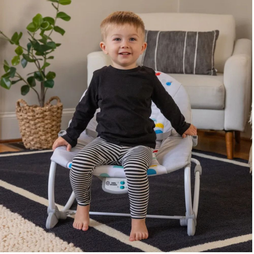 Le transat bébé de Baby Einstein Dean offre balancement, vibrations et musique pour apaiser et divertir bébé jusqu’à 18 kg. Offrez à votre bébé un espace de détente confortable avec le transat à bascule musical et vibrant Dean Baby Einstein. Conçu pour apaiser et divertir, il combine mouvements de balancement, vibrations douces et mélodies pour accompagner les moments de repos comme d’éveil. Adapté jusqu’à 18 kg, il évolue avec l’enfant et devient un indispensable du quotidien. Ce transat multifonction accompagne bébé dans ses moments de détente et d’éveil. Grâce à ses différentes fonctionnalités, il permet de calmer bébé tout en stimulant ses sens. Sa conception assure confort et maintien, tout en offrant une utilisation évolutive au fil de la croissance.