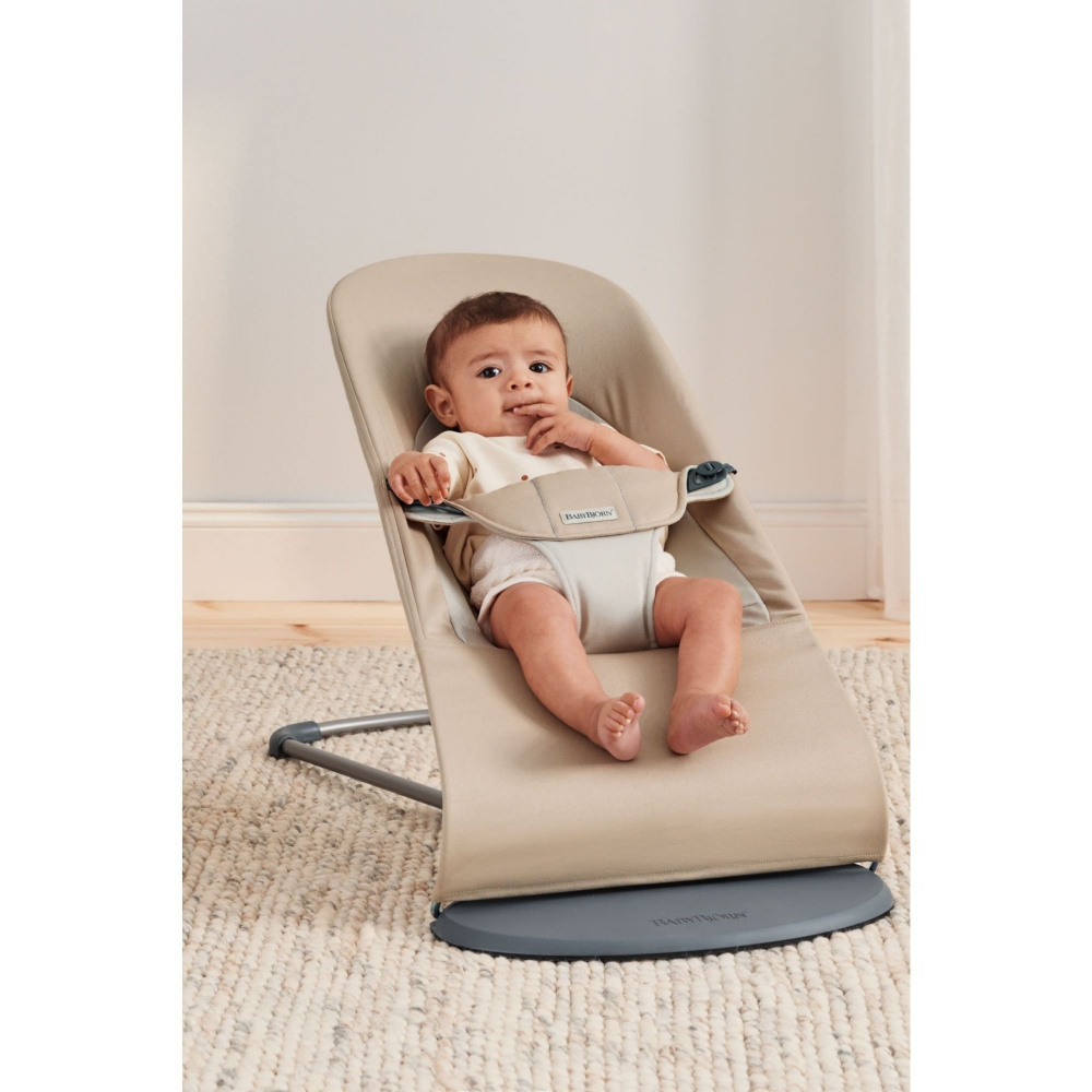 Le Transat bébé balance coton beige et kaki de chez Babybjorn. Fourni avec une housse en coton très douce, vous pourrez l'utiliser dès la naissance de votre enfant jusqu'à ses 2 ans environ. Évolutif, vous pouvez l'utiliser en transat jusqu'à 9kg. Par la suite, il suffit de retourner la housse pour le transformer en fauteuil confortable jusqu'à 13 kg. Facile à déplacer et à transporter, vous pouvez vous équiper d'un sac de transport (vendu séparément). Votre enfant sera apaisé par le balancement naturel de ce transat bébé. Il est déhoussable ce qui vous permettra de facilement nettoyer la housse ou de la changer pour une autre matière comme le Jersey 3D ou le Mesh. Ce transat garantit un soutien optimal du dos, de la nuque et de la tête de votre bébé.